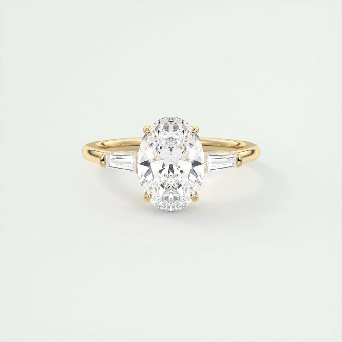 2.2 Ct Oval Baguette Three Stone Moissanite Diamond Engagement Ring