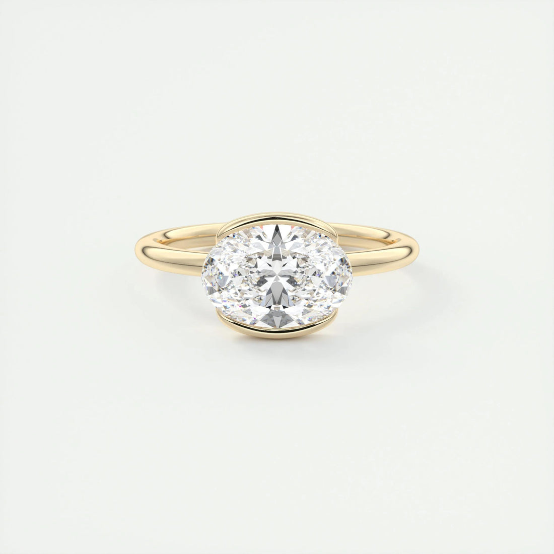 2.0 Ct Oval East West Half Bezel Solitaire Moissanite Diamond Engagement Ring