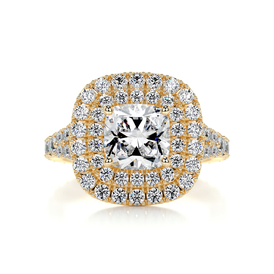 1.96 Carat Cushion Double Halo Split Shank Moissanite Engagement Ring