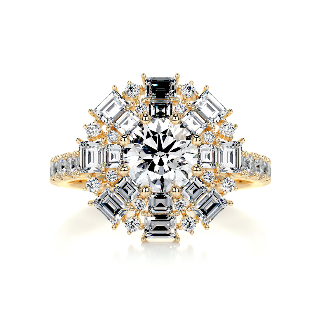 2.57 Carat Halo Pavé Round Cut Moissanite Engagement Ring