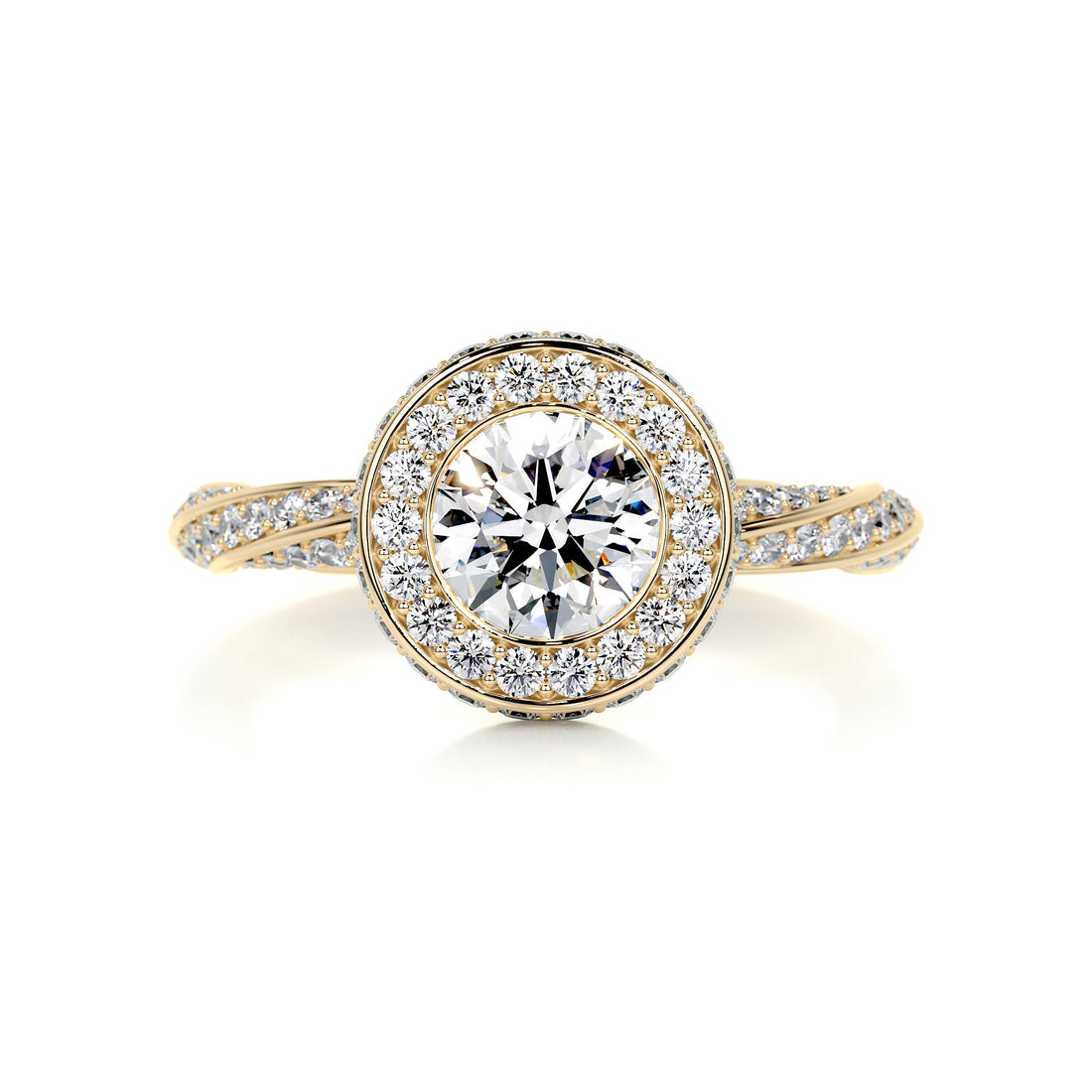 2.6 Carat Bezel Round Halo Moissanite Twisted Engagement Ring