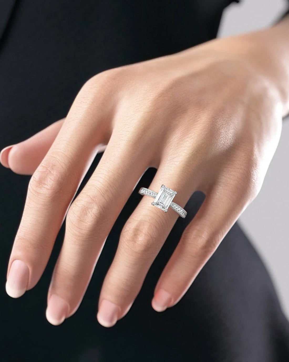 1.0- 3.0 CT Emerald Cut CVD Diamond Pave Style Engagement Ring
