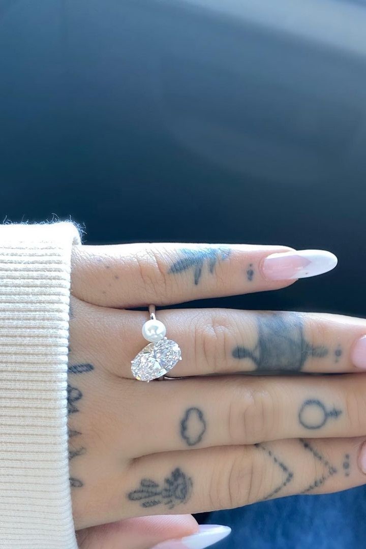 3.0CT Oval Cut Diamond & Pearl Ariana Grande Engagement Ring