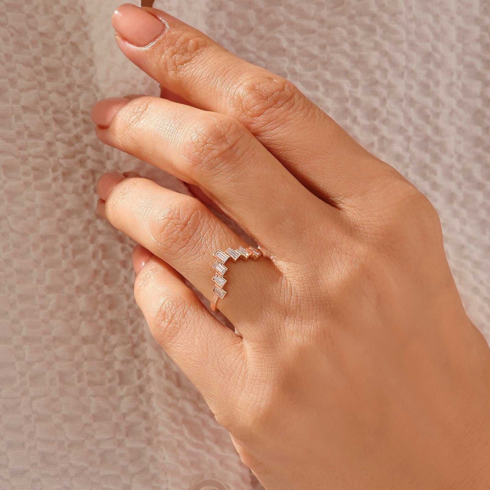 0.03 CT Baguette Moissanite Minimalist Ring for Women
