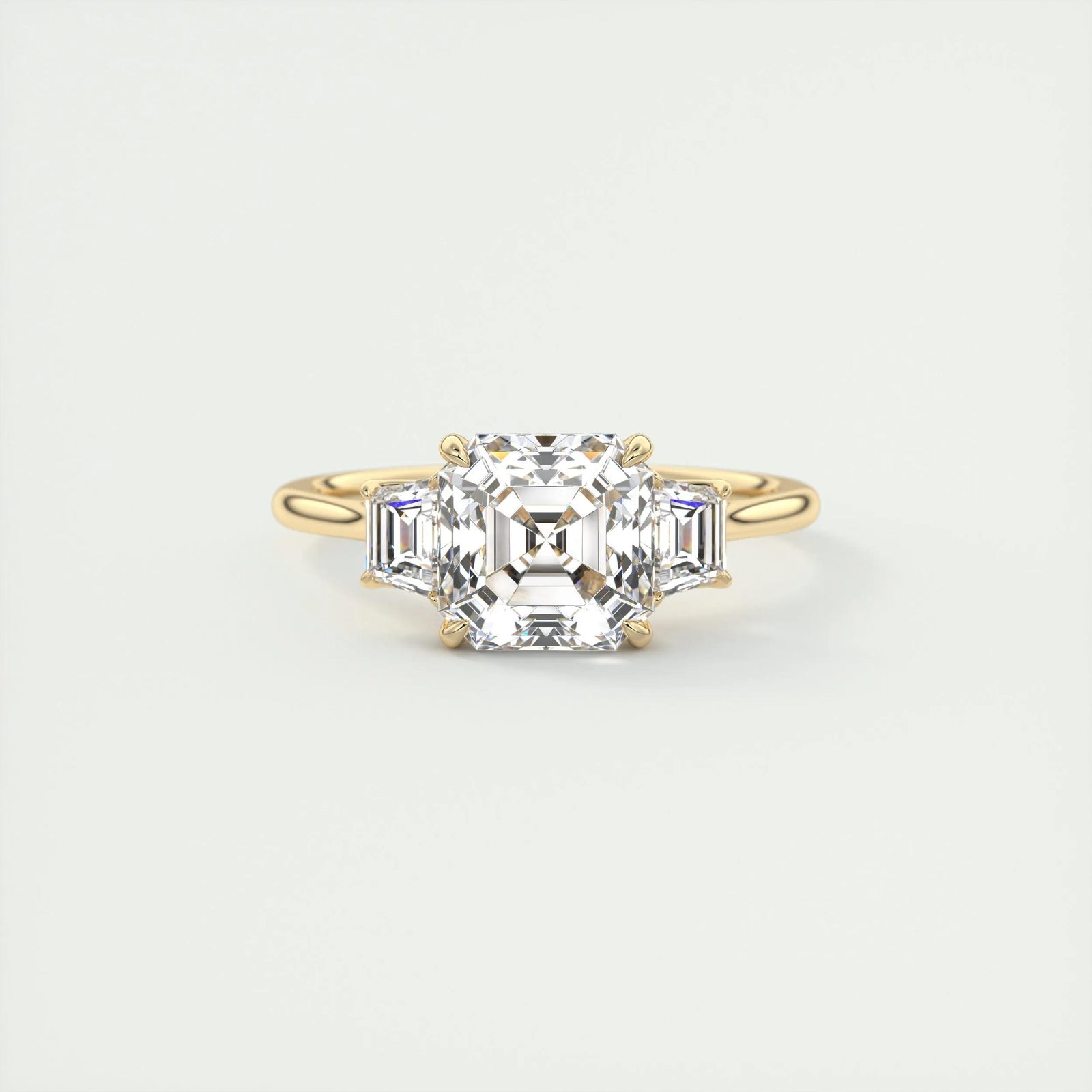 2.0 ct Asscher Three Stone Moissanite Diamond Engagement Ring