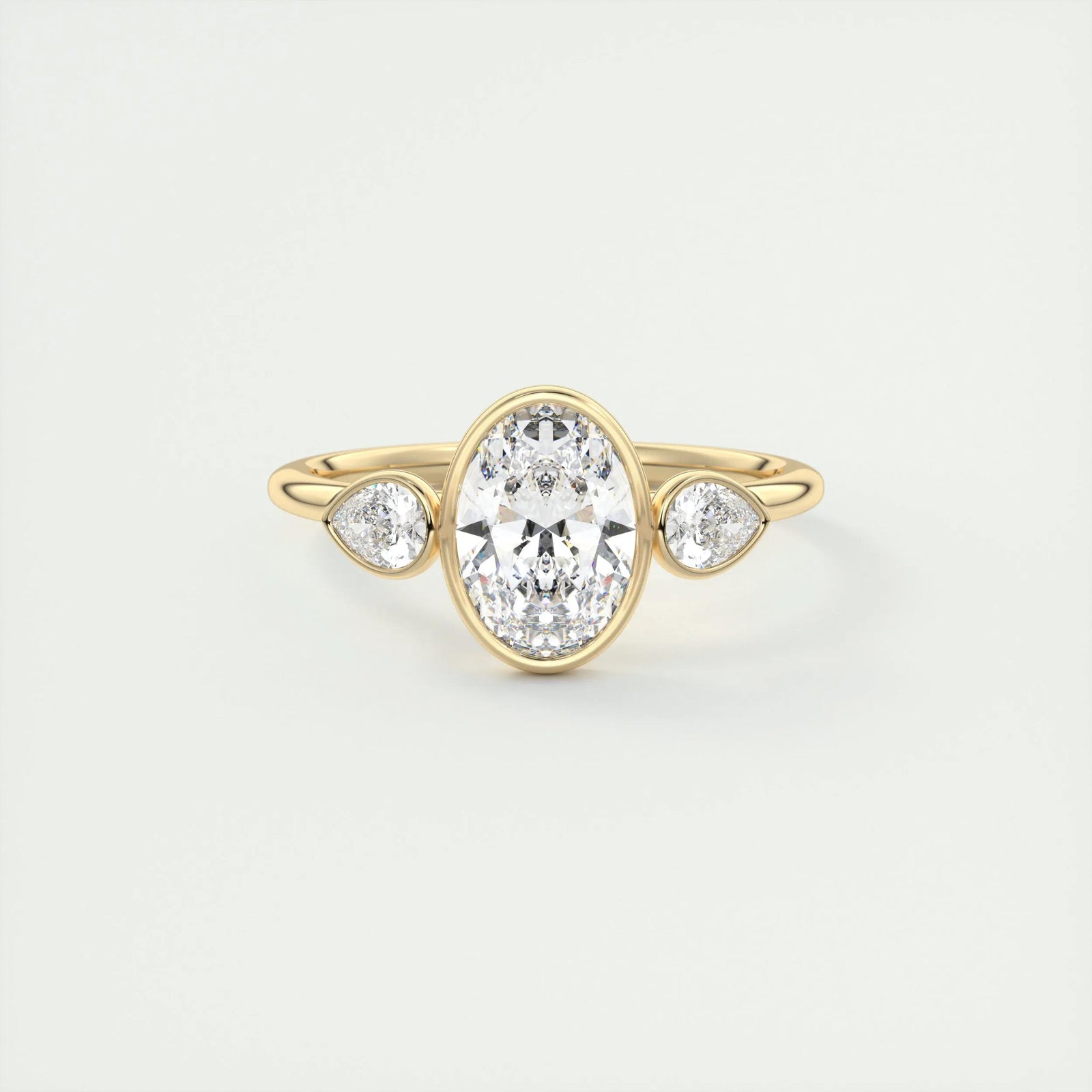 2.5 Ct Oval Pear Three Stone Bezel Moissanite Diamond Engagement Ring
