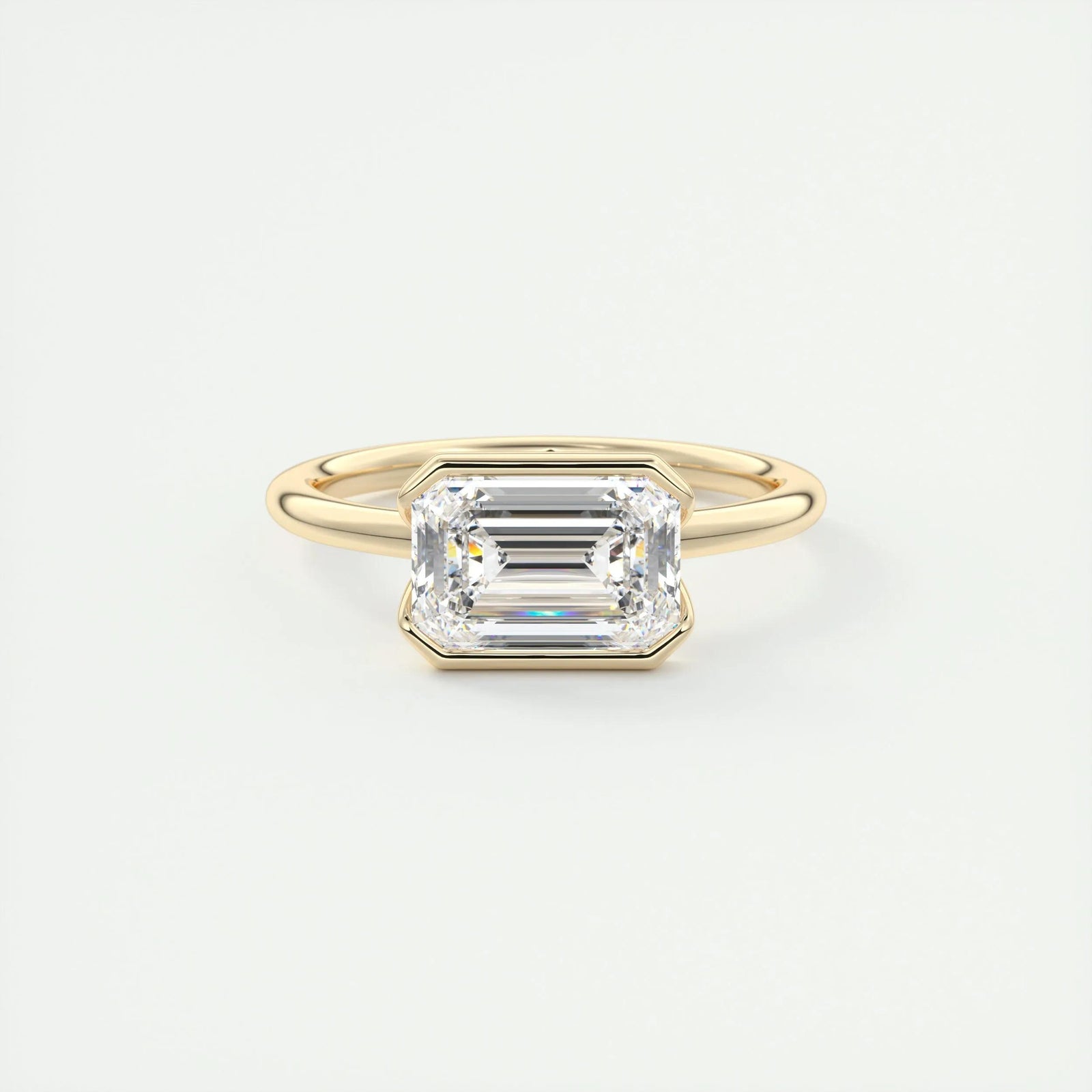 2CT East West Emerald Cut Moissanite Half Bezel Solitaire Engagement Ring