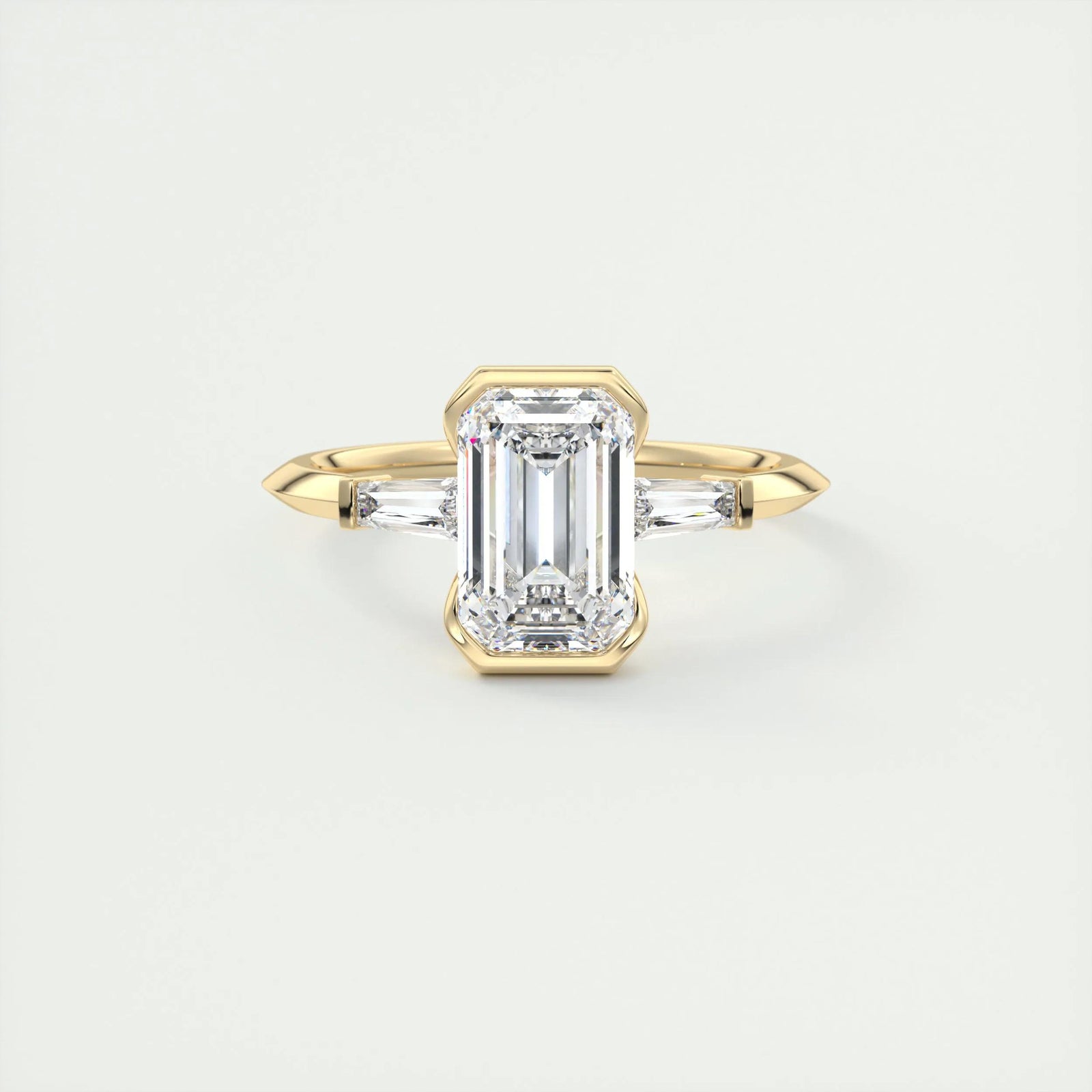 2.5 Ct Emerald Three Stone Bezel Moissanite Engagement Ring
