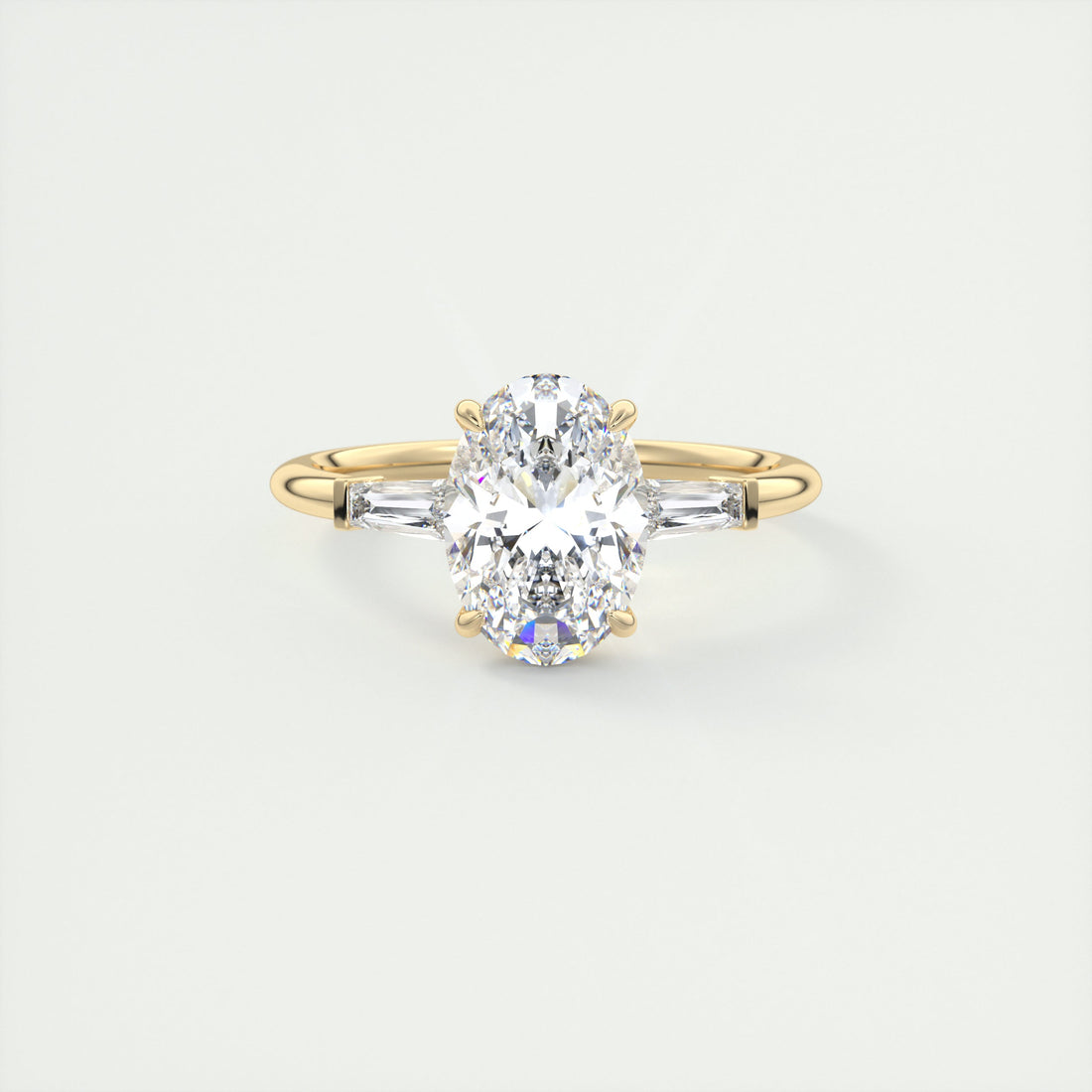 ✦ Main Stone Details ✦✧ Shape: Oval Moissanite✧ Weight: 2.15 Carat  ✧ Color: DEF(Colorless)✧ Clarity: VVS ✦ Side Stone Details ✦✧ Shape: Taper ✧ Weight: 0.35 Carat ✧...