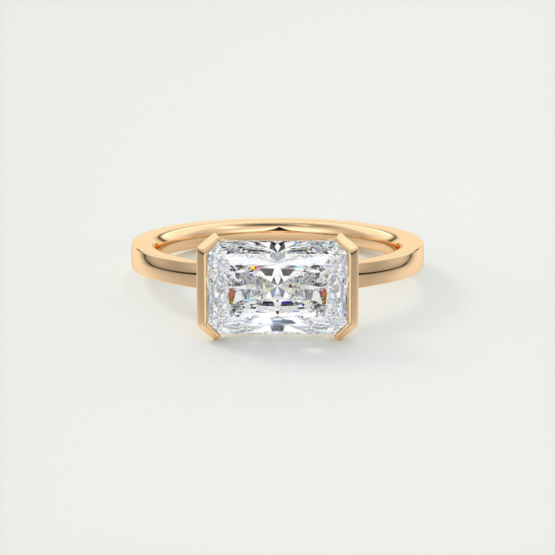 2CT East West Radiant Cut Moissanite Half Bezel Solitaire Engagement Ring