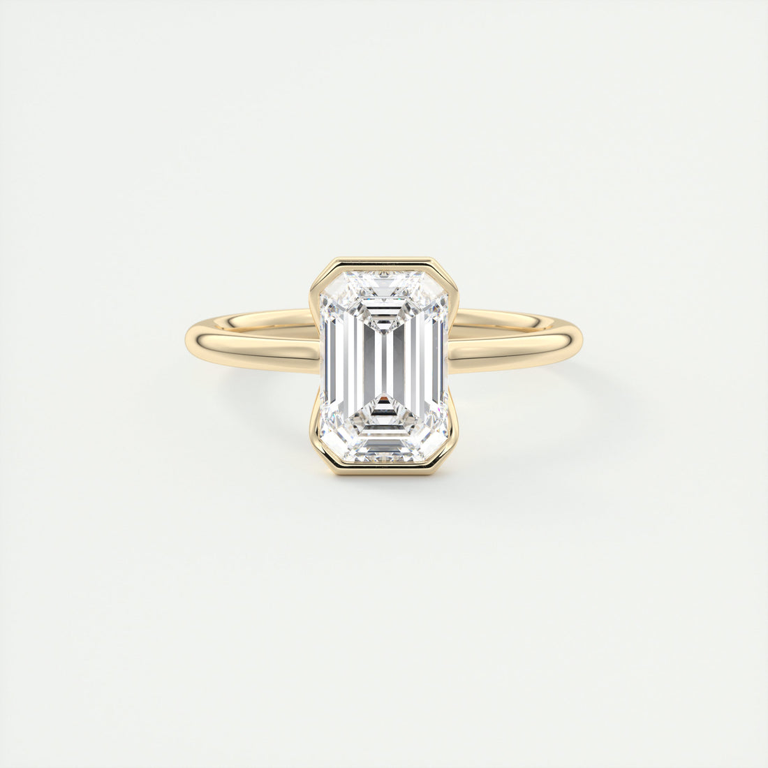 2CT Emerald Cut Moissanite Bezel Solitaire Engagement Ring
