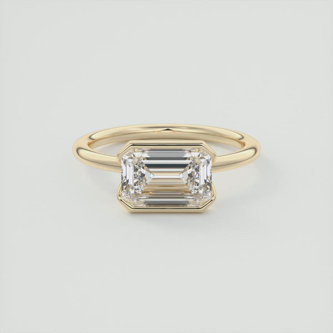 2CT East West Emerald Cut Moissanite Bezel Solitaire Engagement Ring