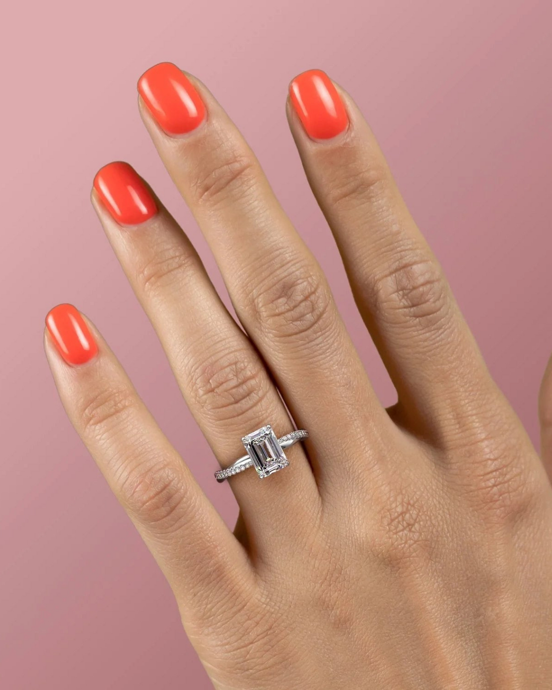 2.0- 4.0 CT Emerald Cut CVD Diamond Hidden Halo & Pave Engagement Ring