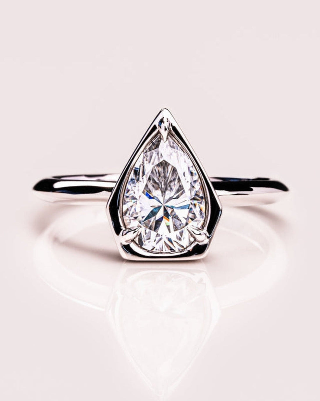 1.33-3.33 CT Pear CVD Diamond Solitaire Engagement Ring