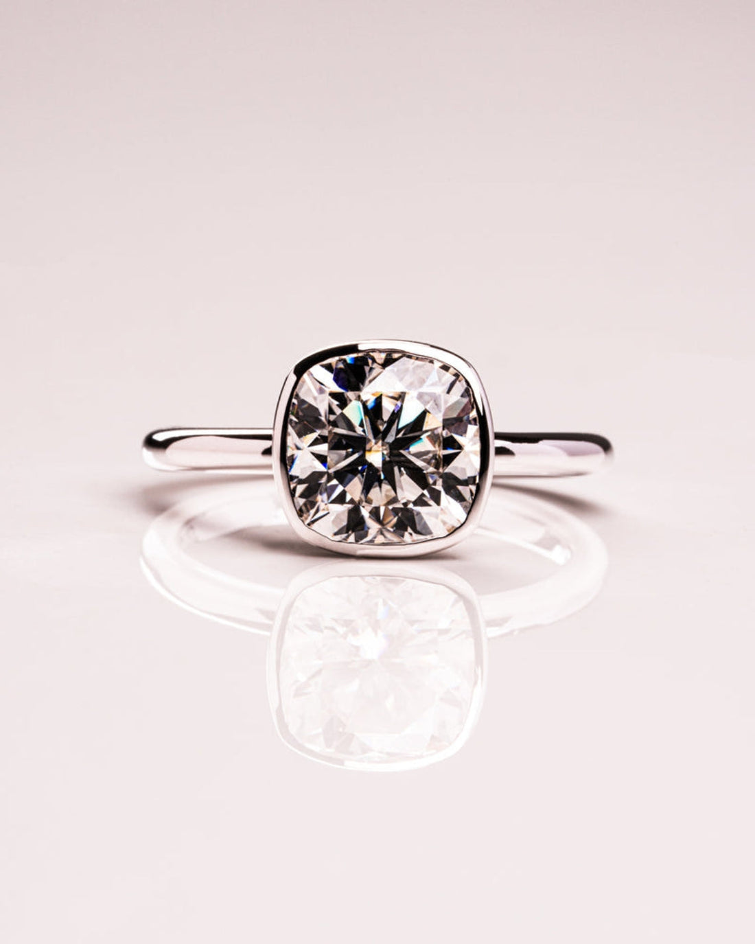 1.15 - 3.15 CT Cushion CVD Diamond Bezel Hidden Halo Engagement Ring