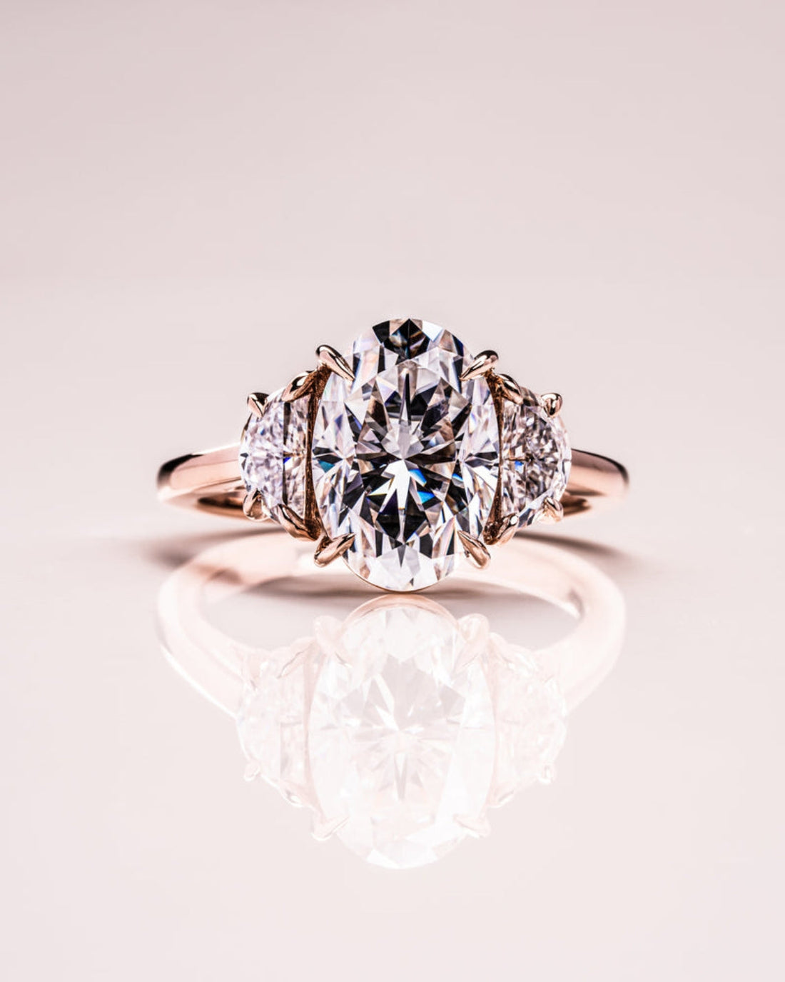 1.50 - 3.0 CT Oval CVD Diamond Three Stone Style Engagement Ring
