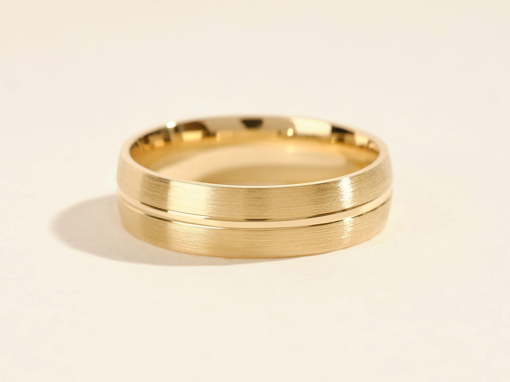 6.0mm Basic Carved Matte Brushed Men's Gold Wedding Band