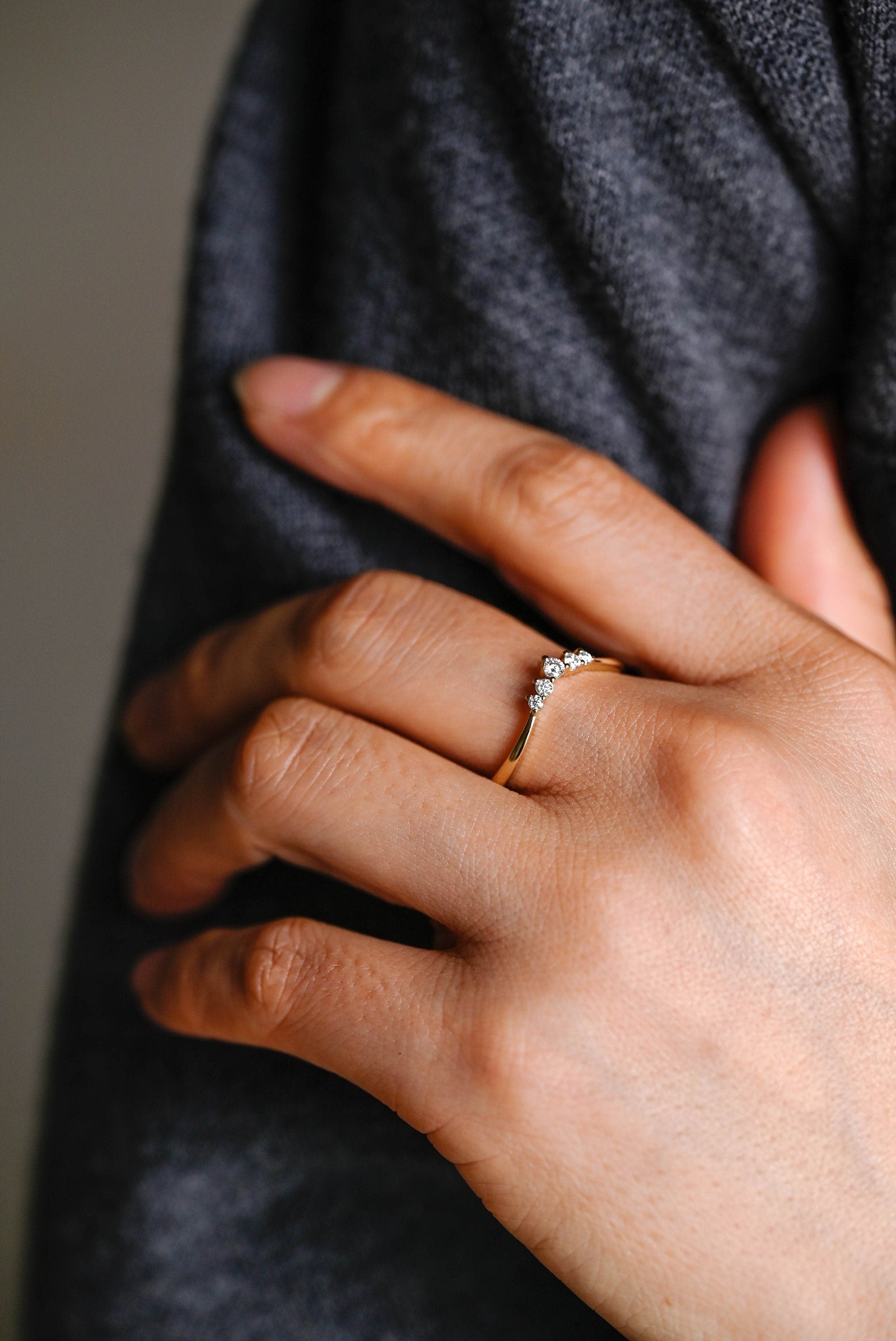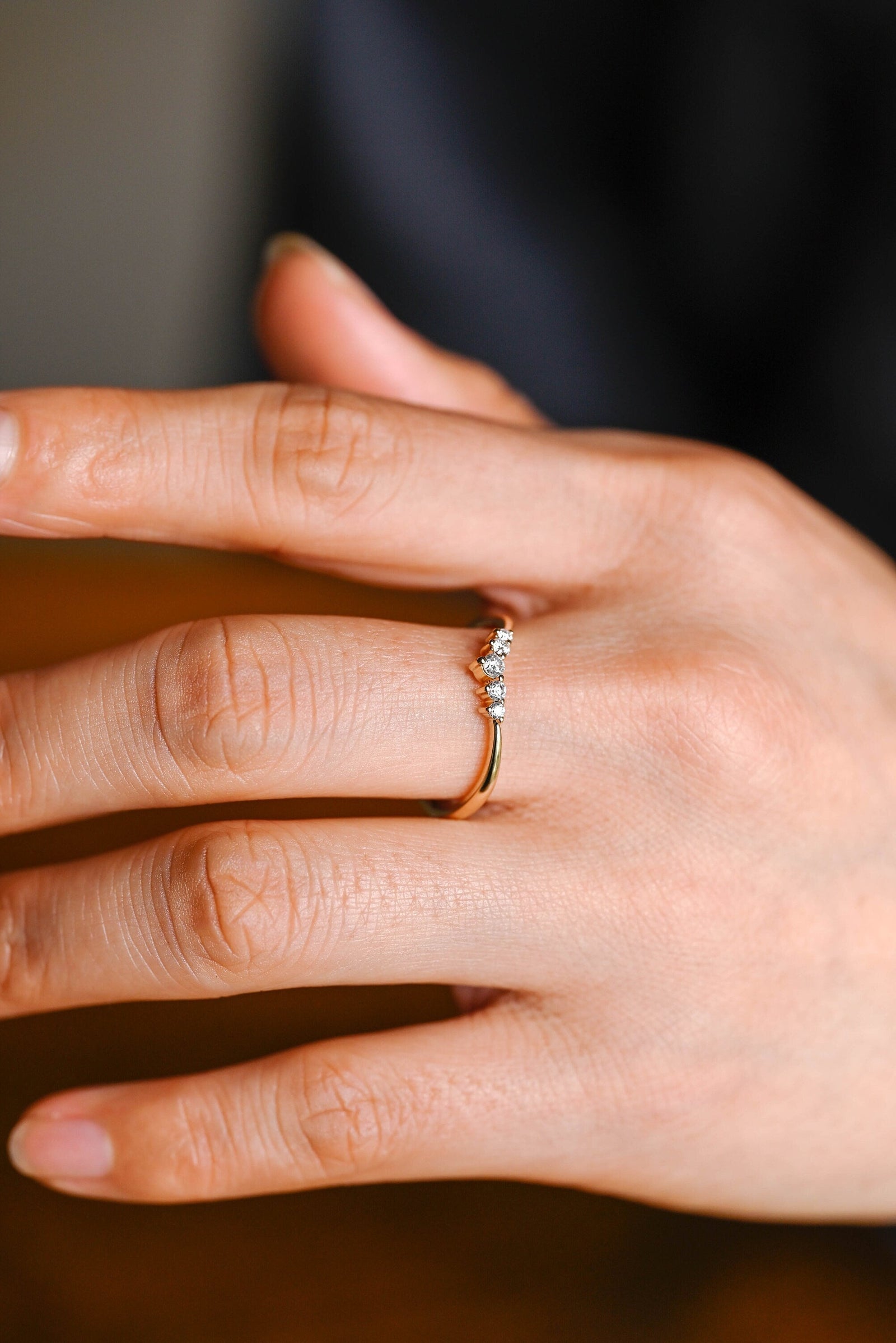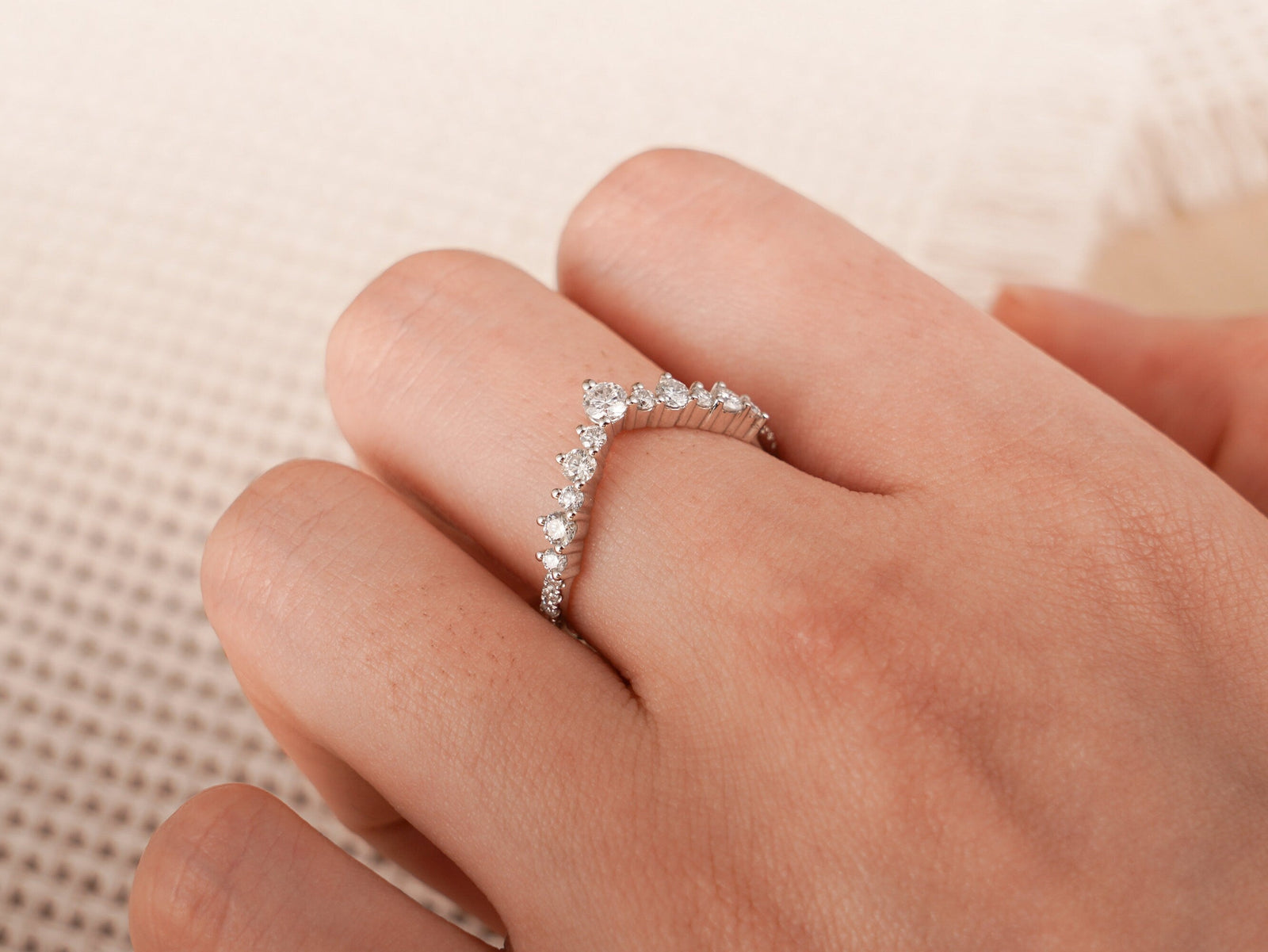 0.27CT Round Cut Curved CVD EF/VVS Diamond Wedding Band For Women