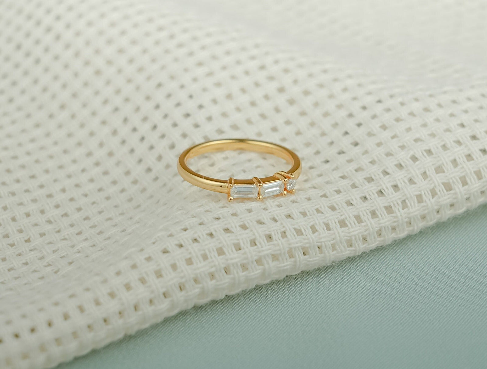 0.25CT Baguette & Round Cut Three Stone CVD EF/VVS Diamond Wedding Band For Women