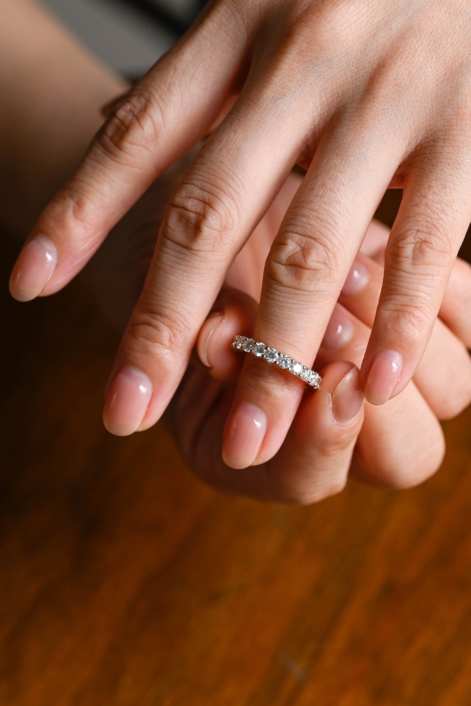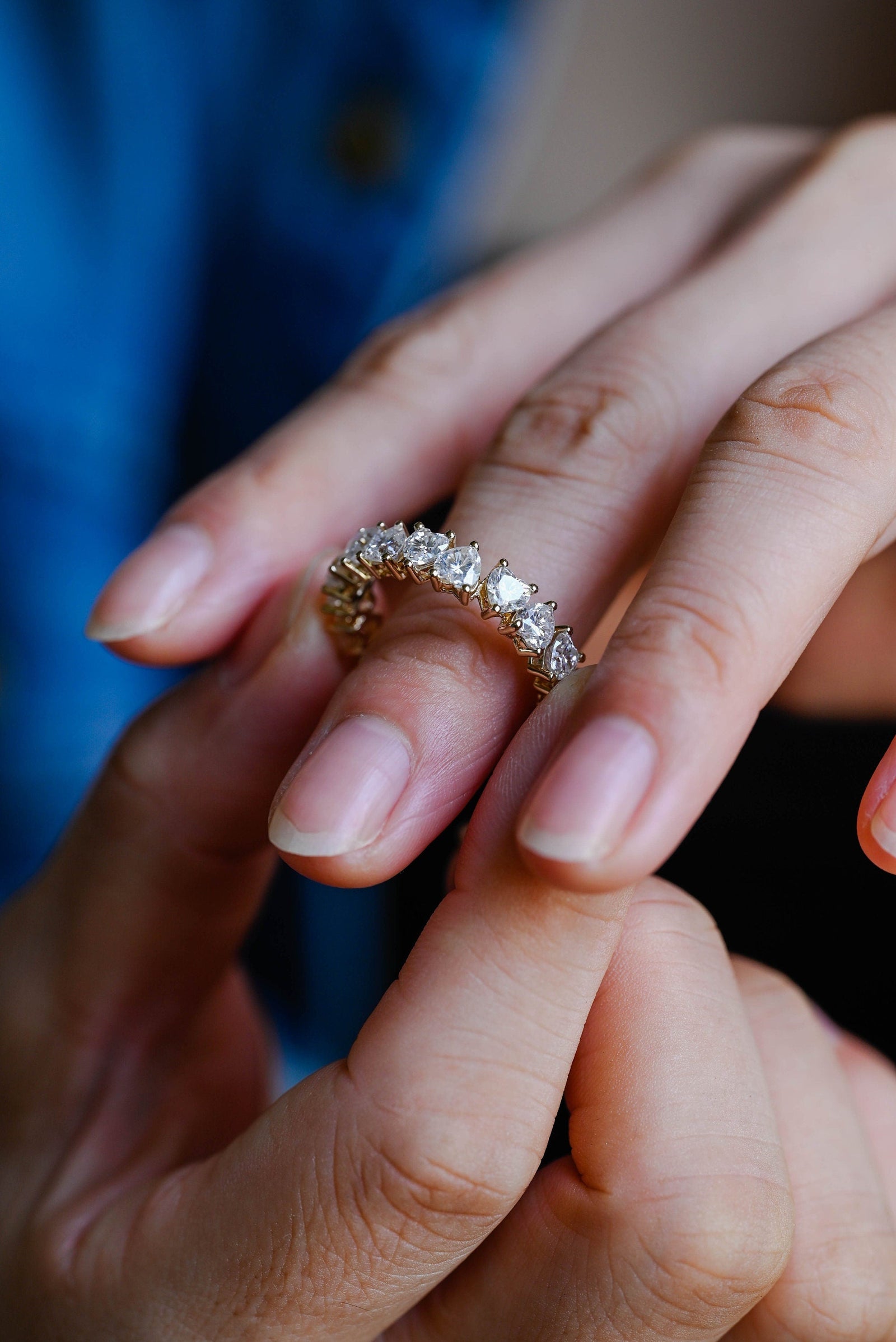 4.65CT Heart Cut Full Eternity CVD EF/VVS Diamond Wedding Band For Women