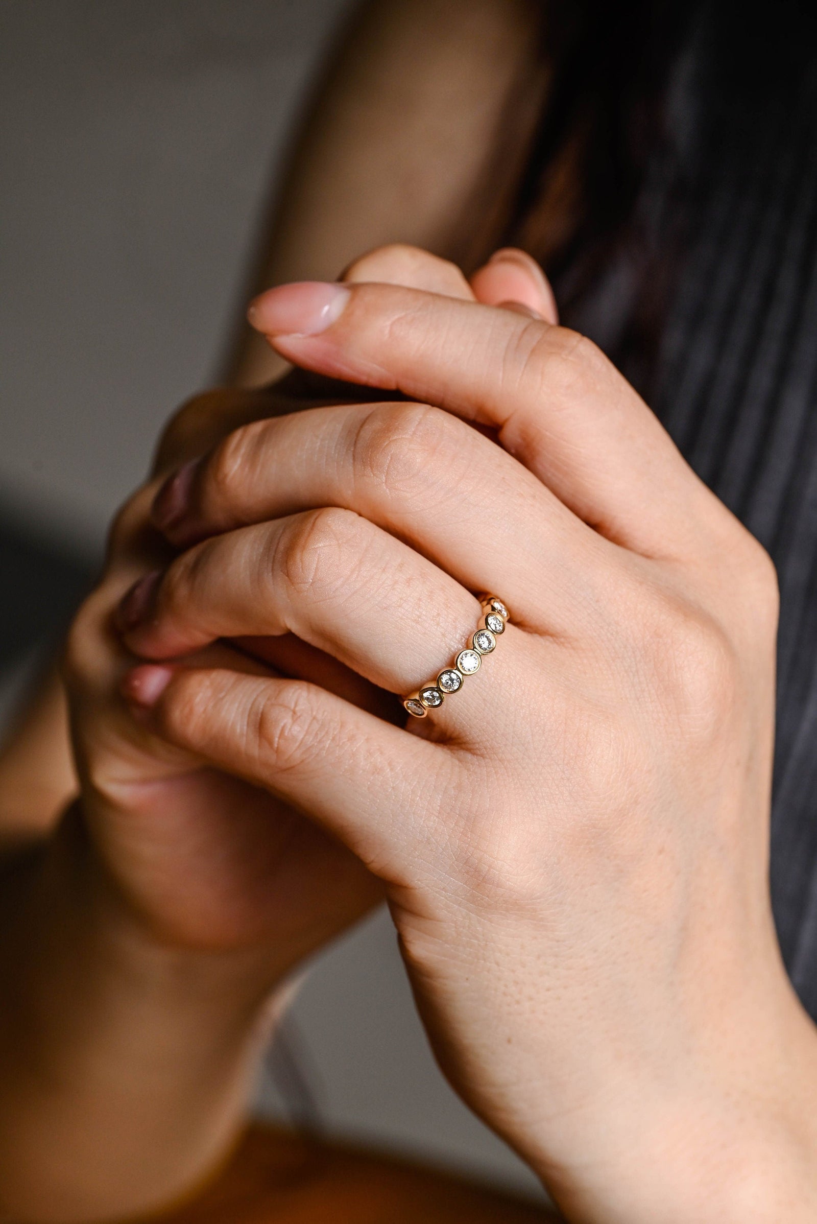 0.85CT Round Cut Staggered Twisted CVD EF/VVS Diamond Wedding Band For Women