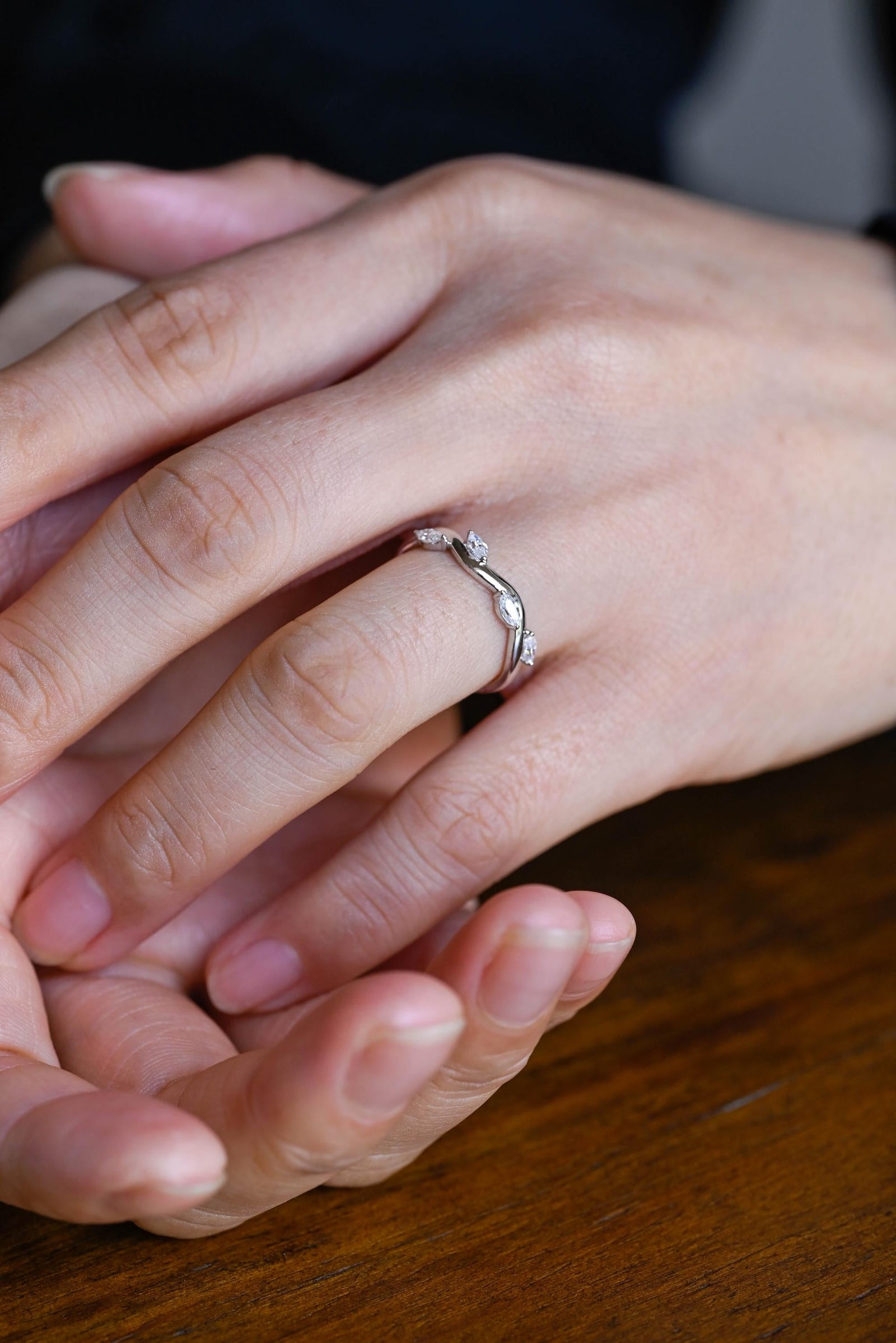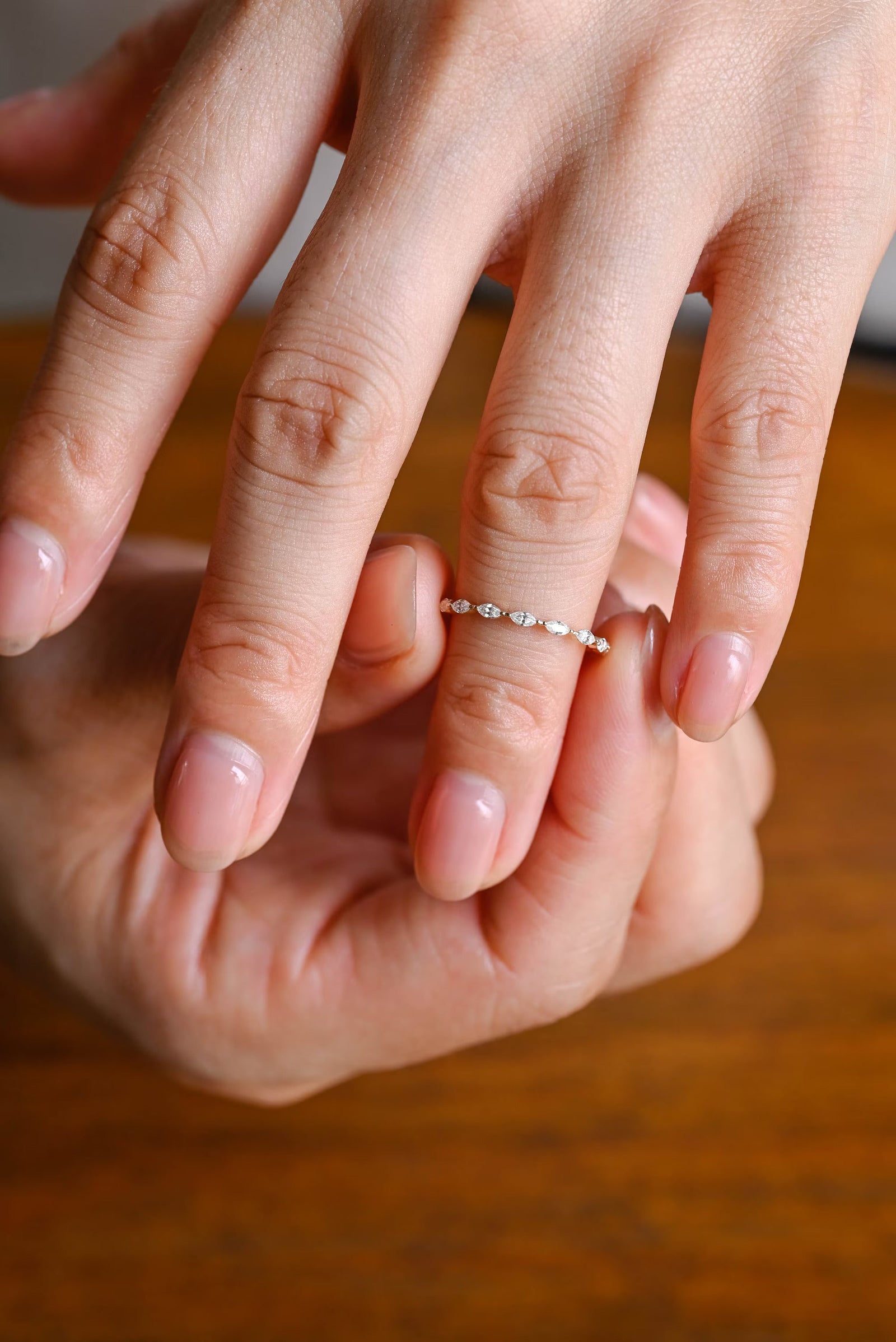 0.25CT Marquise Cut Wave CVD EF/VVS Diamond Wedding Band For Women