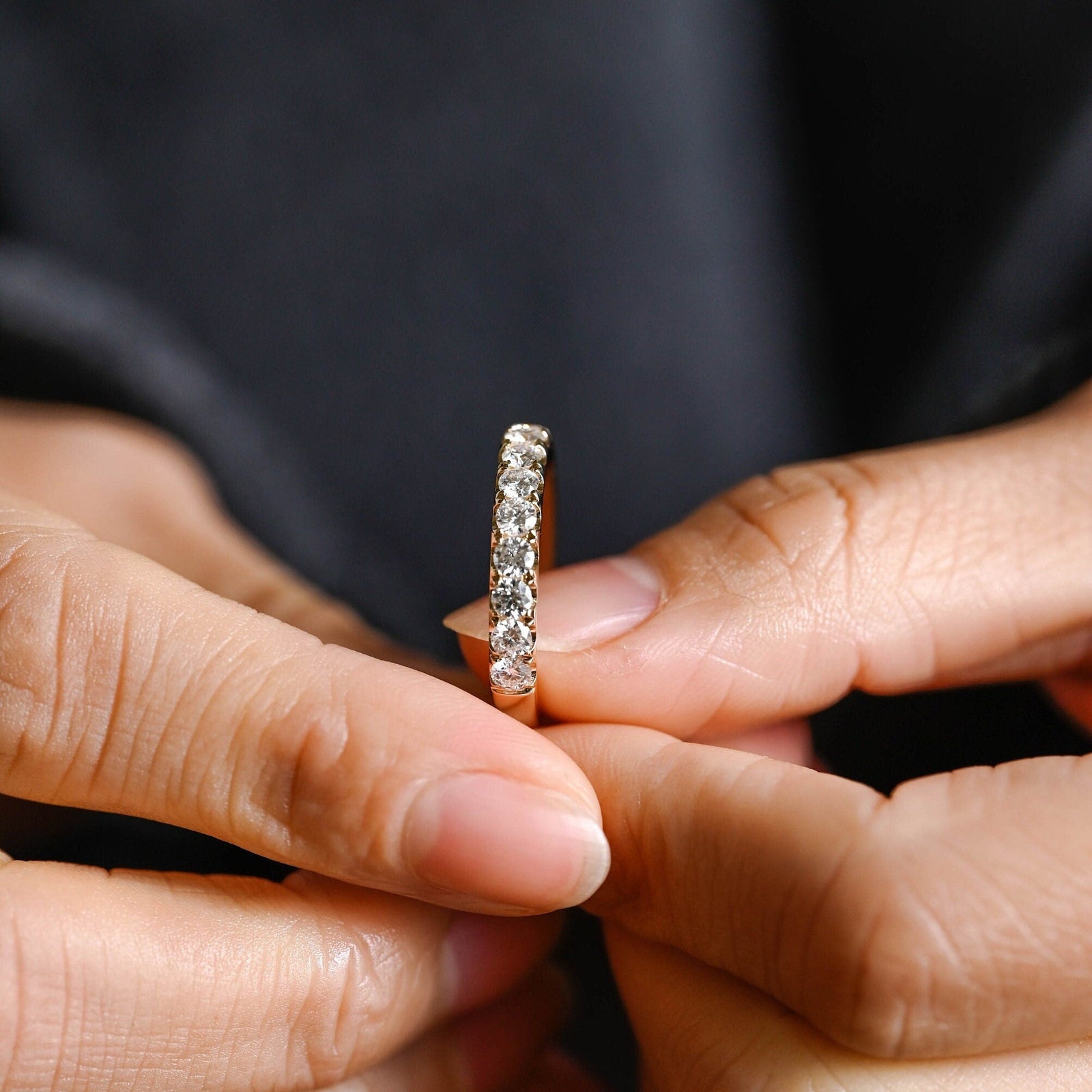 0.65CT Cushion Cut Half Eternity CVD EF/VVS Diamond Wedding Band For Women