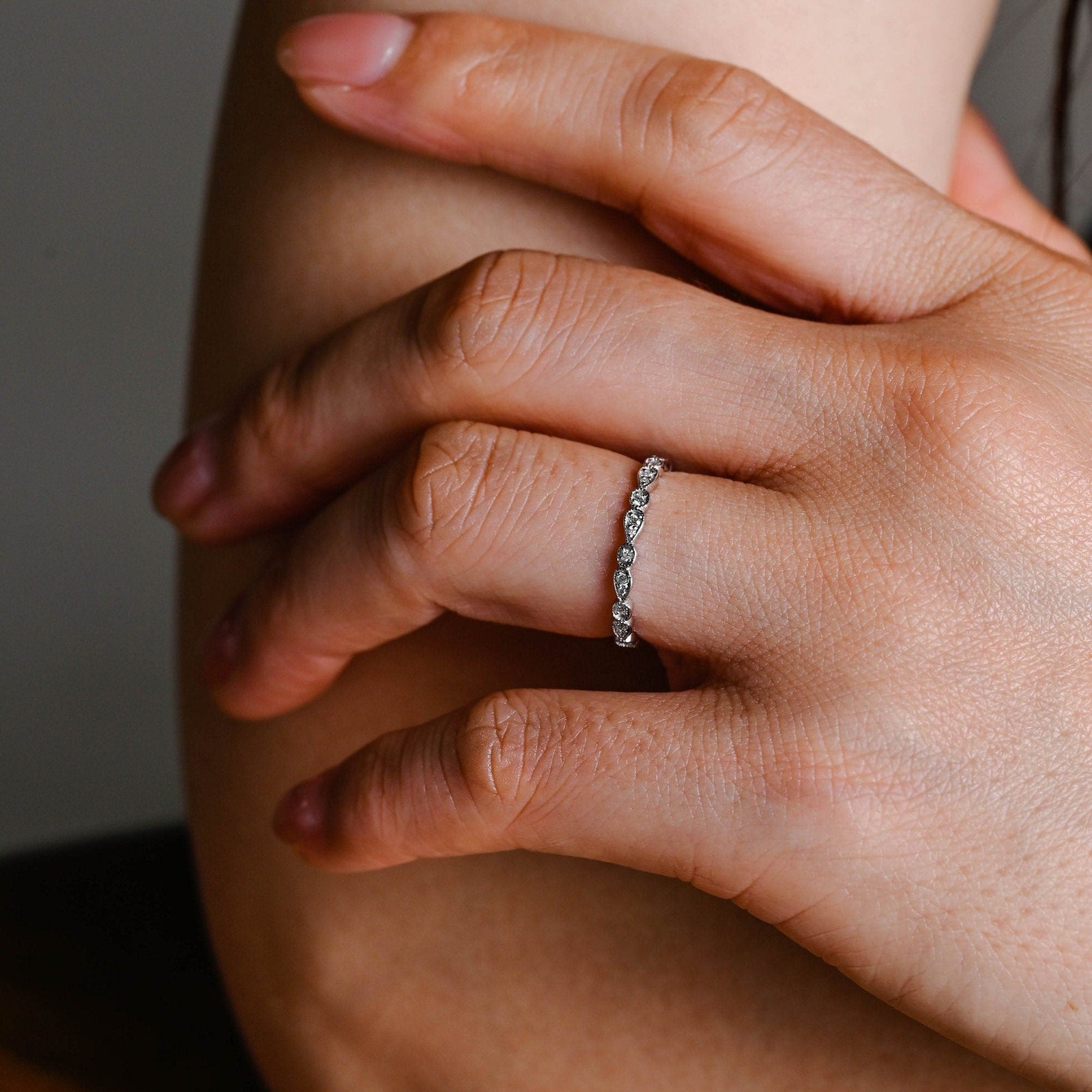 0.32CT Round Cut Vintage CVD EF/VVS Diamond Wedding Band For Women