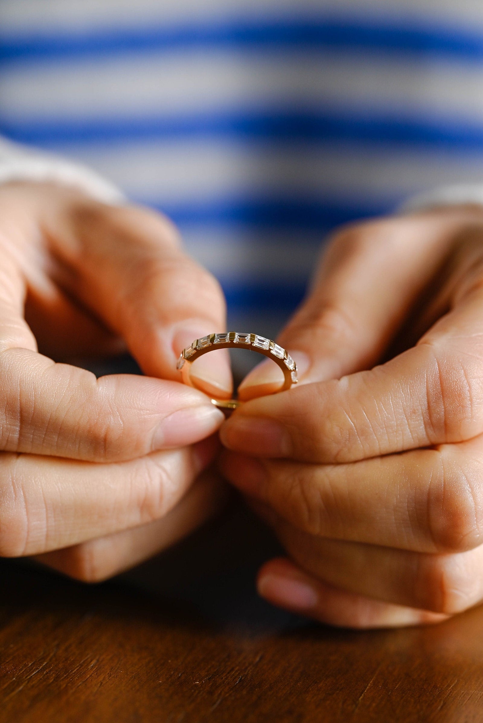 0.65CT Baguette Cut Bar CVD EF/VVS Diamond Wedding Band For Women