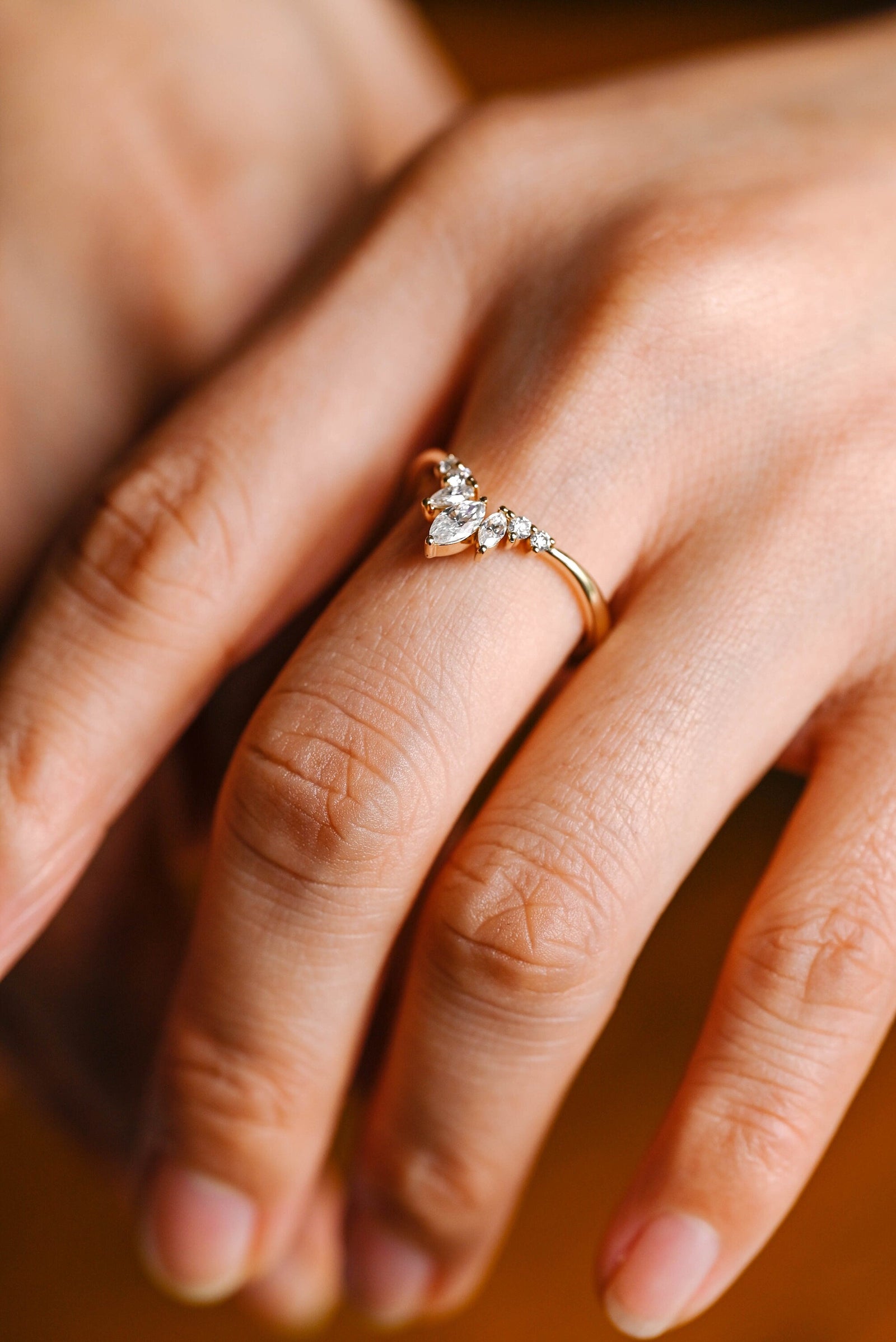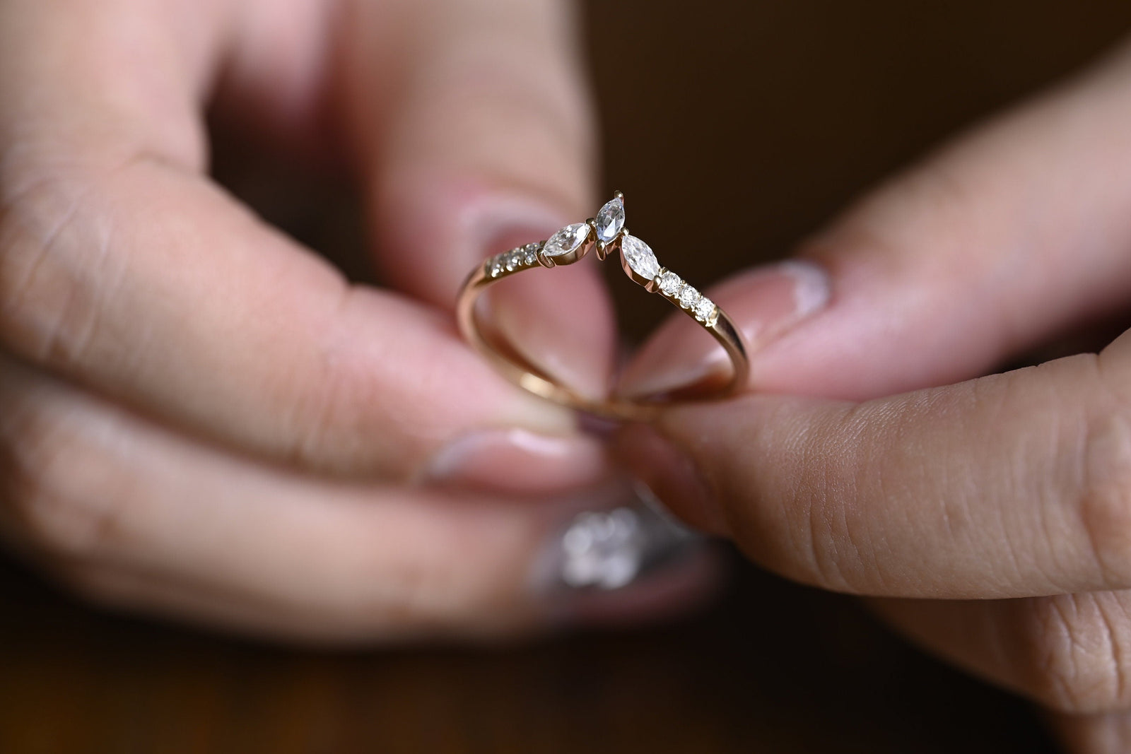 0.35CT Marquise & Round Cut Curved CVD EF/VVS Diamond Wedding Band For Women