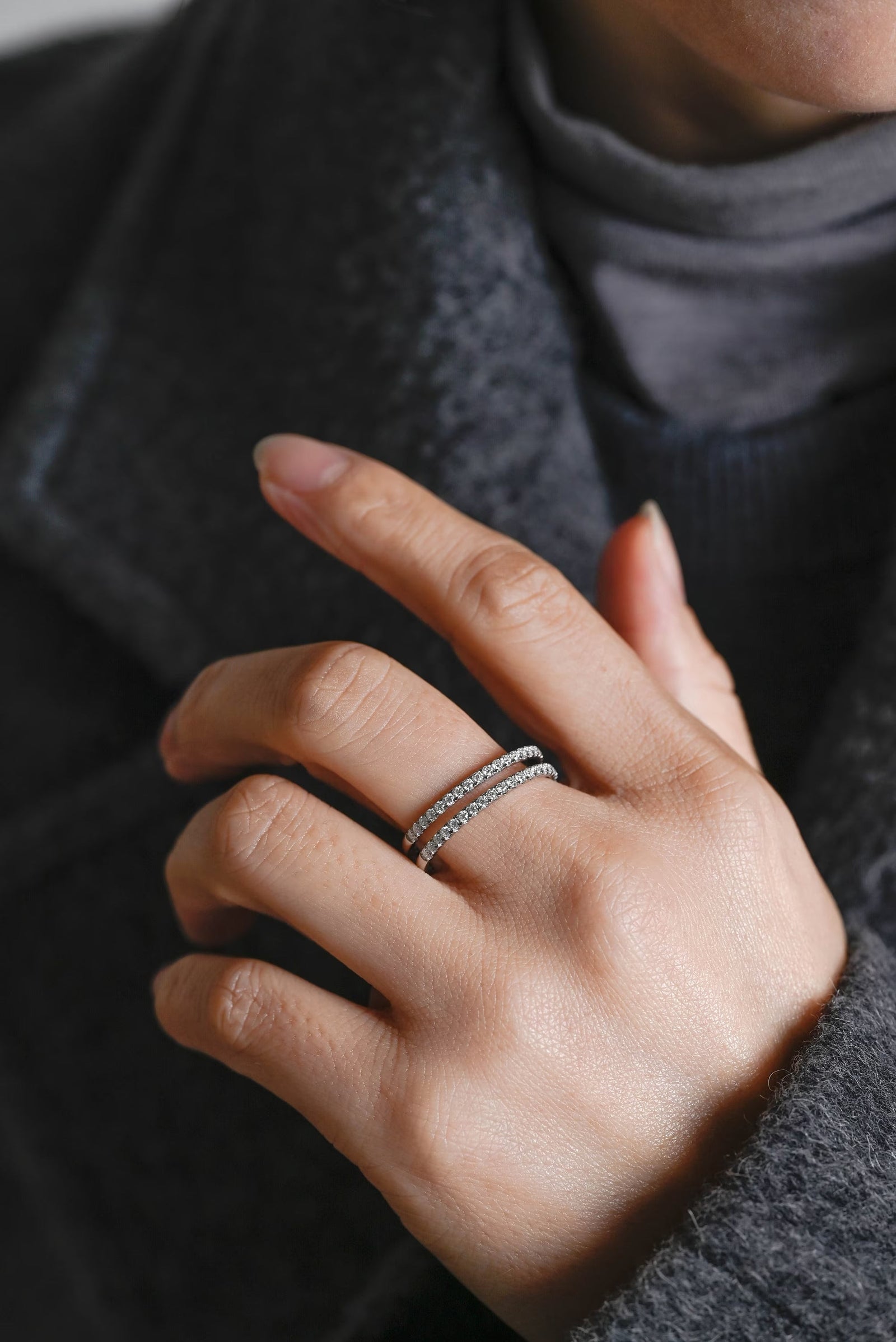 0.93CT Round Cut Double Row CVD EF/VVS Diamond Wedding Band For Women