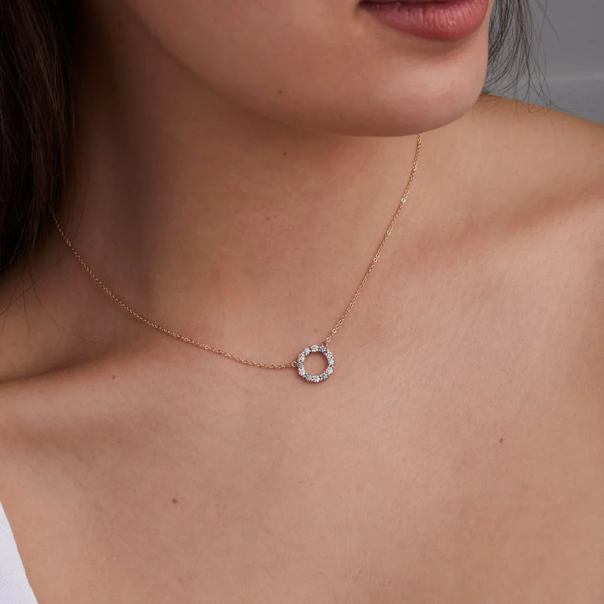 0.70CT Round Aquamarine Diamond March Birthstone Circle Necklace