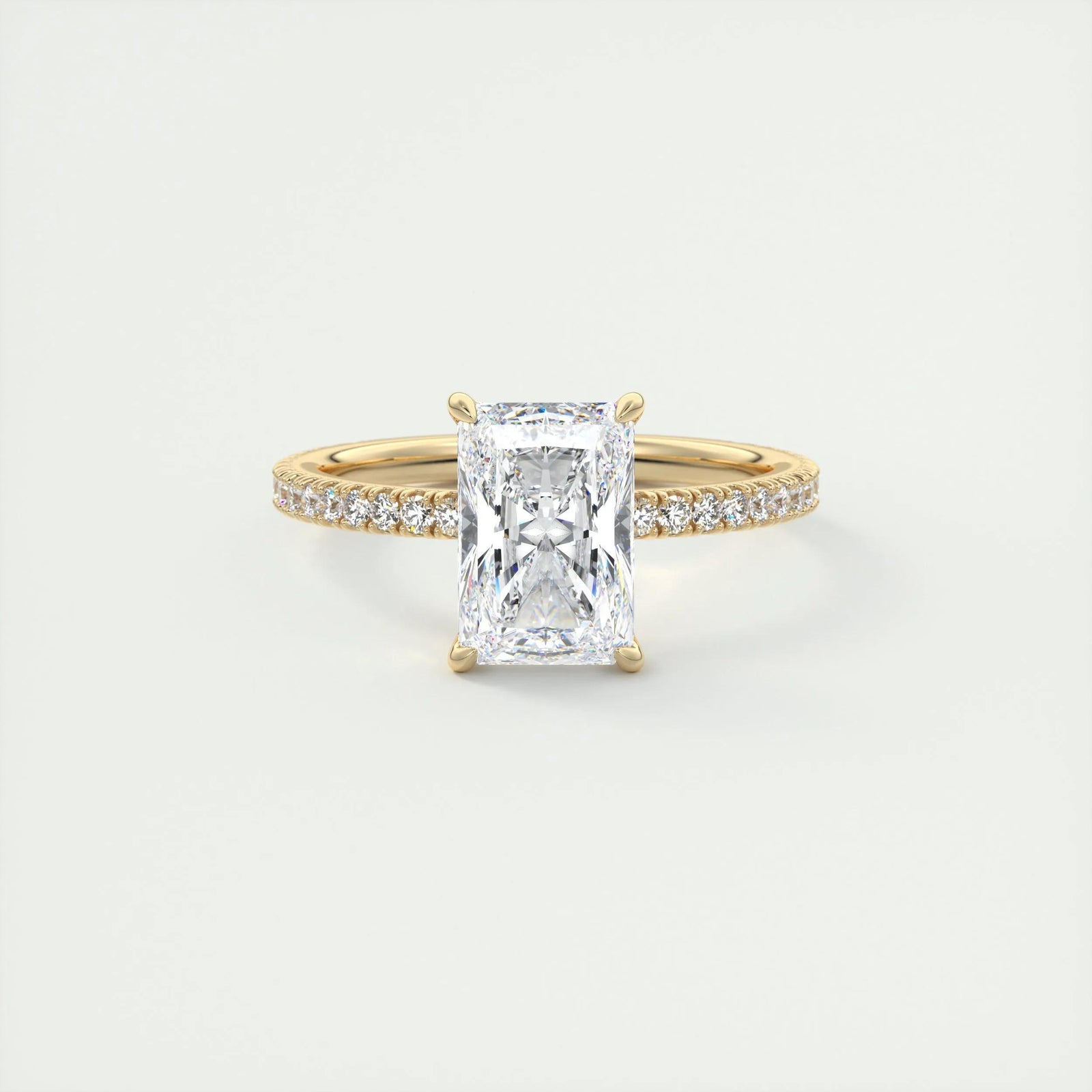 For those who refuse to choose between the sleek geometry of an Emerald cut and the blinding sparkle of a Round brilliant, the Radiant Cut offers the perfect compromise. Boasting 70 distinct facets, our radiant moissanite stones are precision-cut to create an effervescent, "crushed ice" sparkle that hides inclusions and maximizes light return. Whether you prefer a classic square ratio or a trendy elongated radiant that slims and lengthens the finger, this shape is as practical as it is beautiful. Unlike other square cuts (like the Princess), the Radiant features beveled (clipped) corners, making it significantly more durable and less prone to chipping or snagging on clothing. Handcrafted in 14k solid gold or platinum, our collection features secure claw prongs and hidden halo settings that showcase the stone’s depth while keeping it low-profile enough for everyday wear.