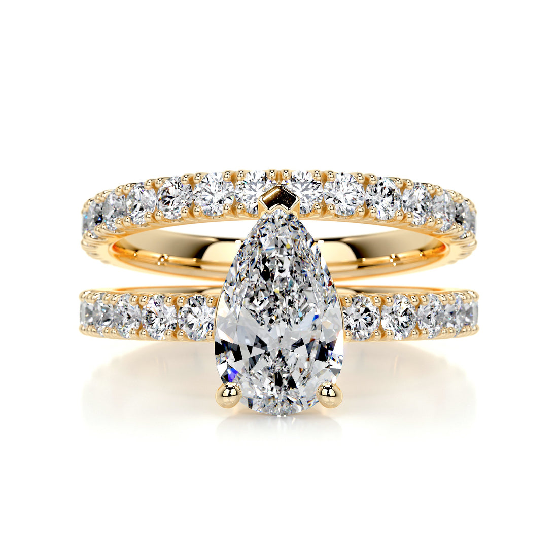 3.55 Carat Pear Pavé Moissanite Bridal Wedding Ring set
