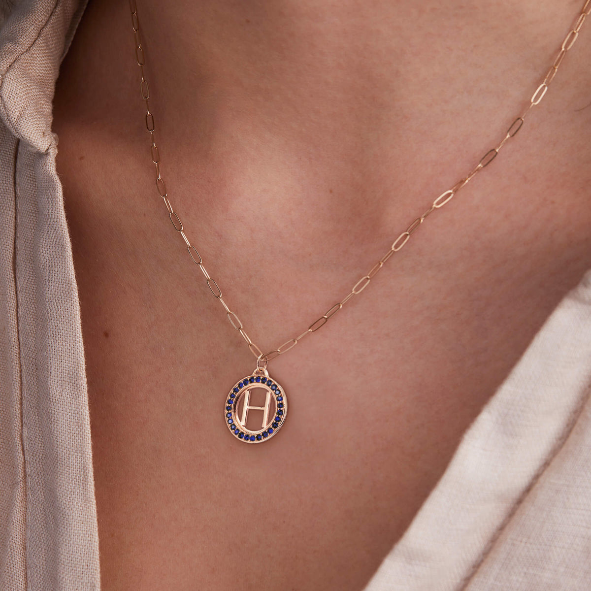 0.25CT Round Sapphire Diamond September Birthstone Latter Necklace