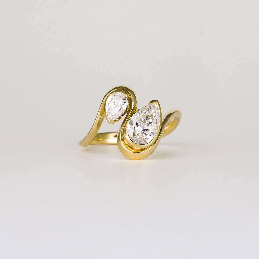0.90 -2.0 Carats Pear Shaped CVD Diamond Two Stone Style Engagement Ring