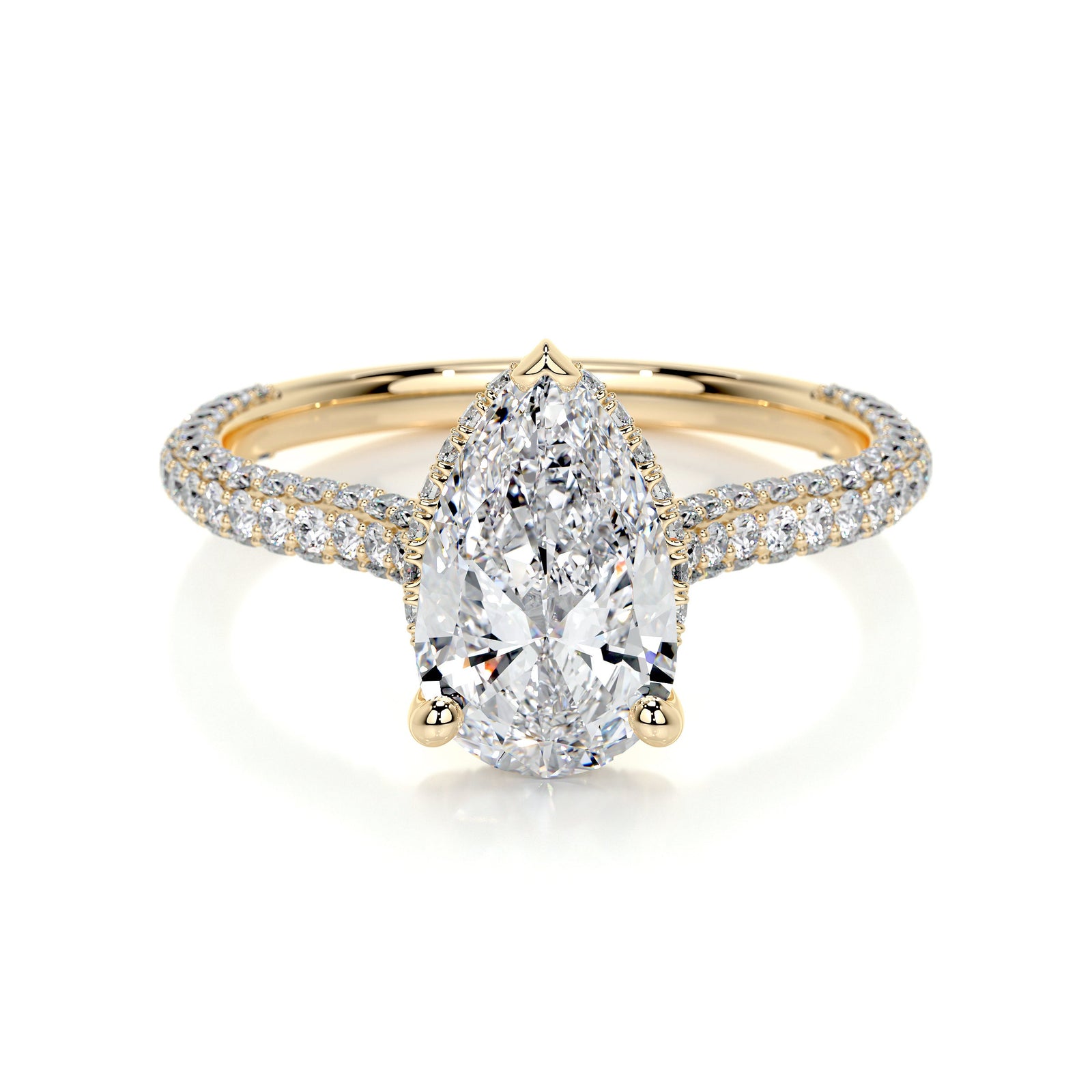 2.3 Carat Pear Halo Triple Pavé Moissanite Engagement Ring
