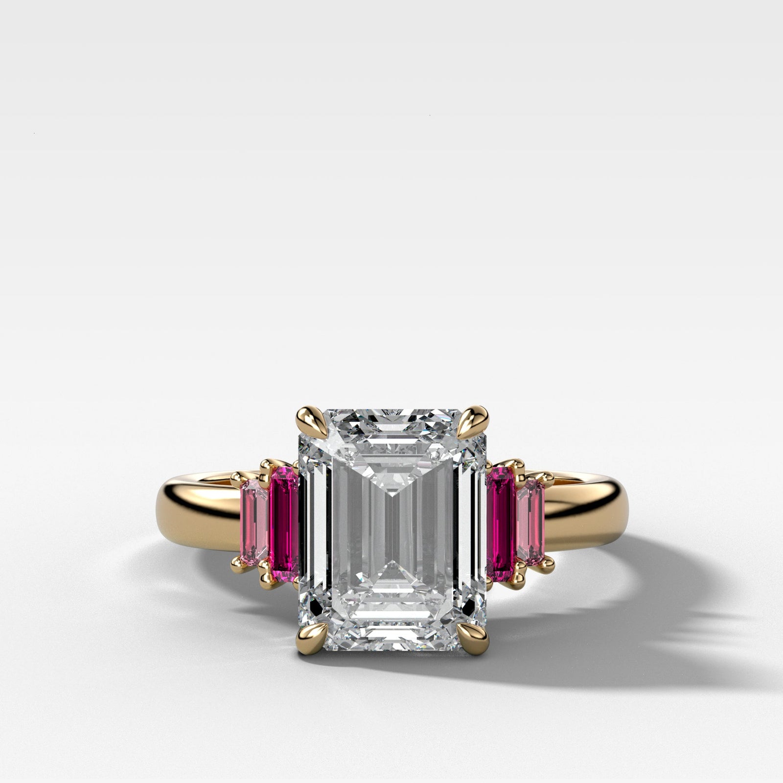 Modern Minimalism: Emerald Cut Half Bezel Ring with Baguettes