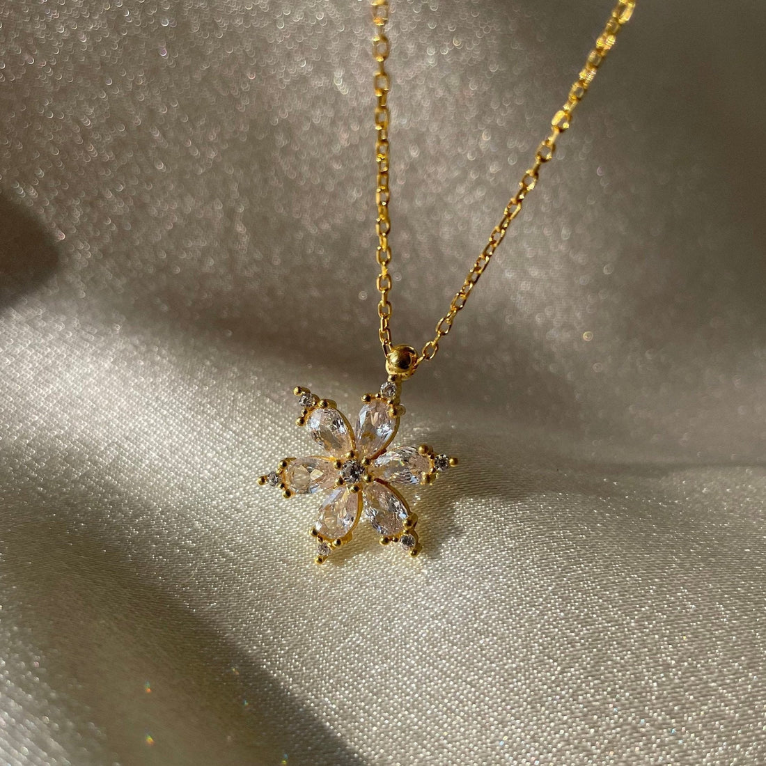 0.25 TCW Round Cut Snow Flake Moissanite Diamond Necklace