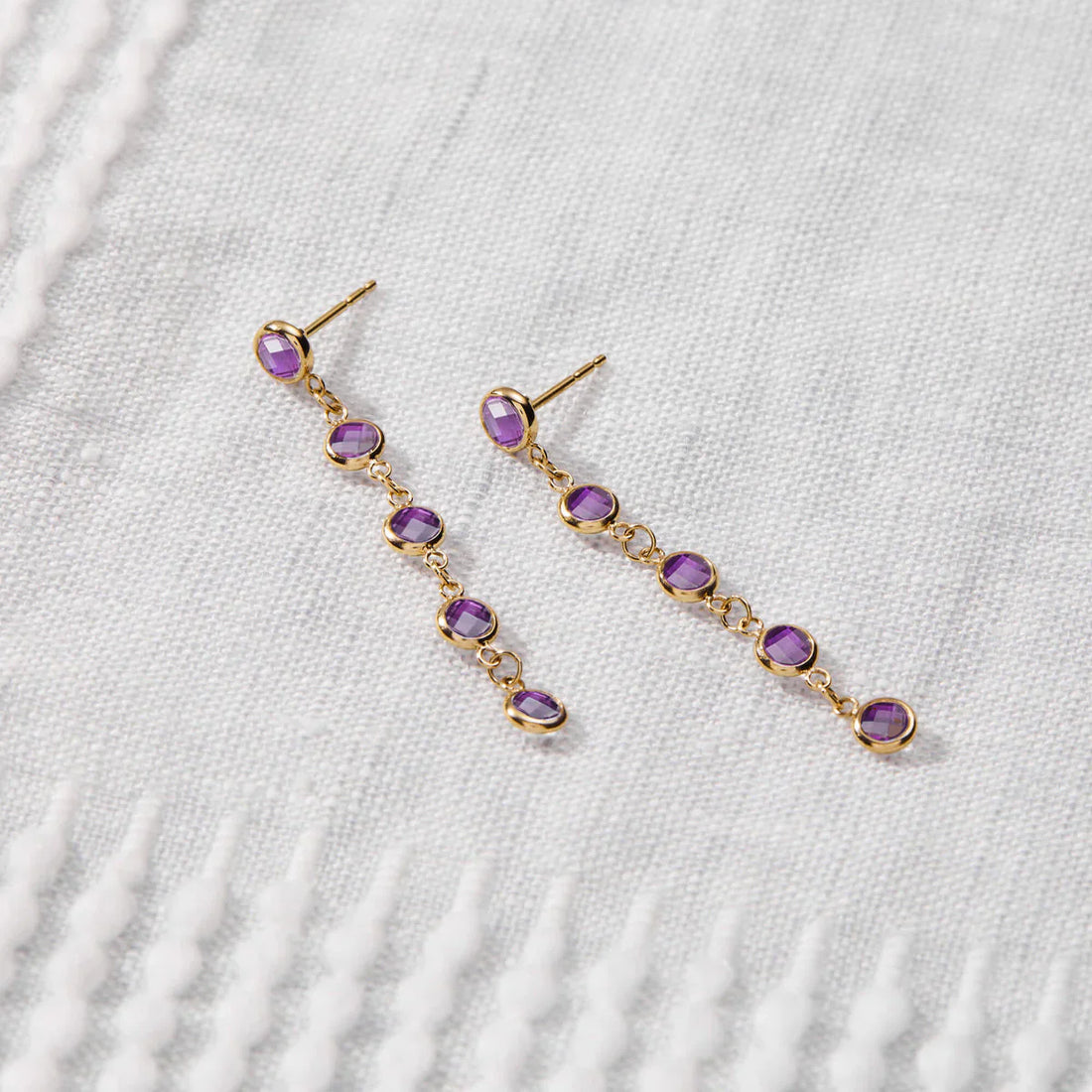 1.25CT Bezel Set Round Amethyst Diamond February Birthstone Dangle