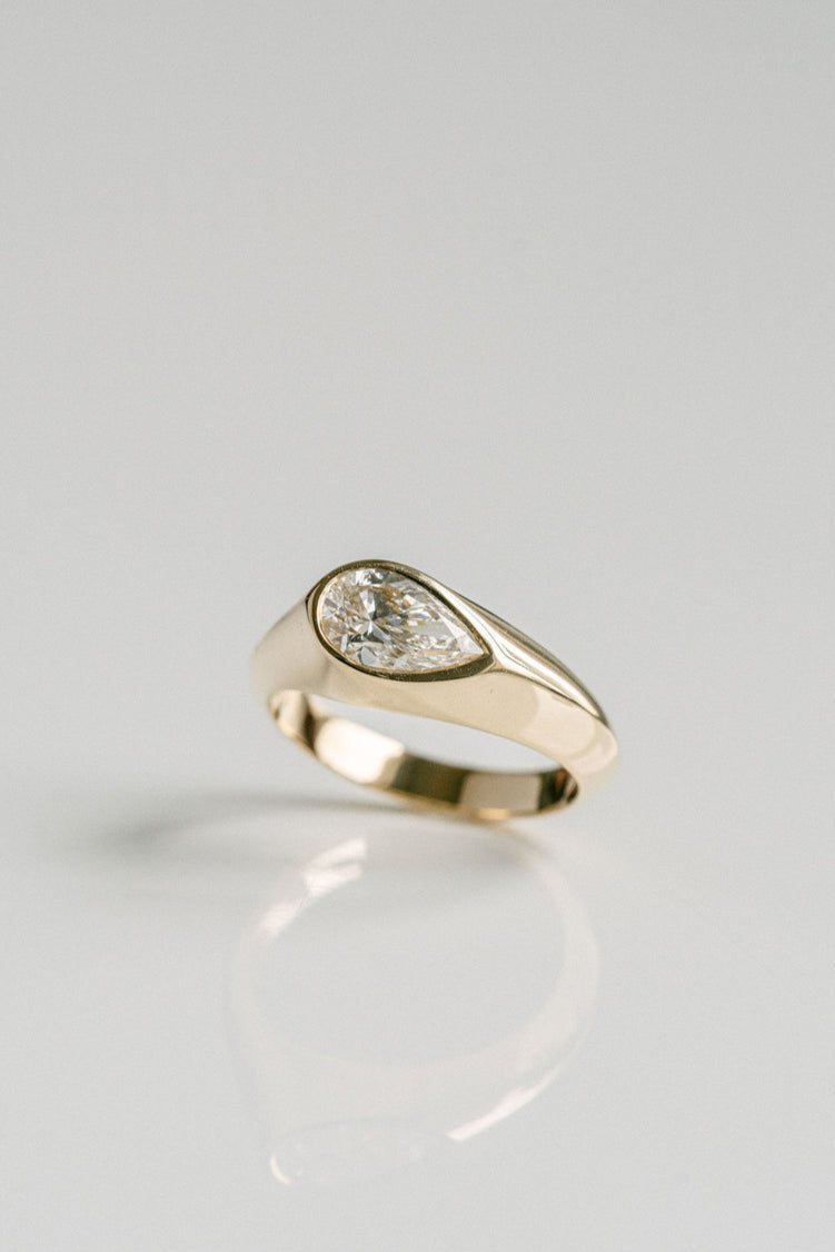 1.0CT-2.0CT Pear Cut Moissanite Unique Diamond Flush Engagement Ring
