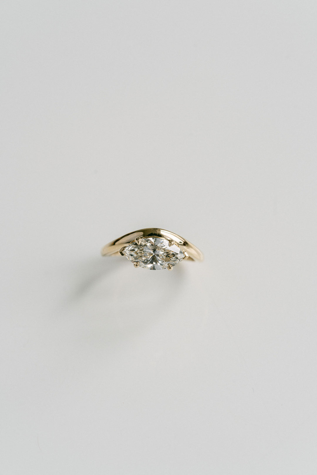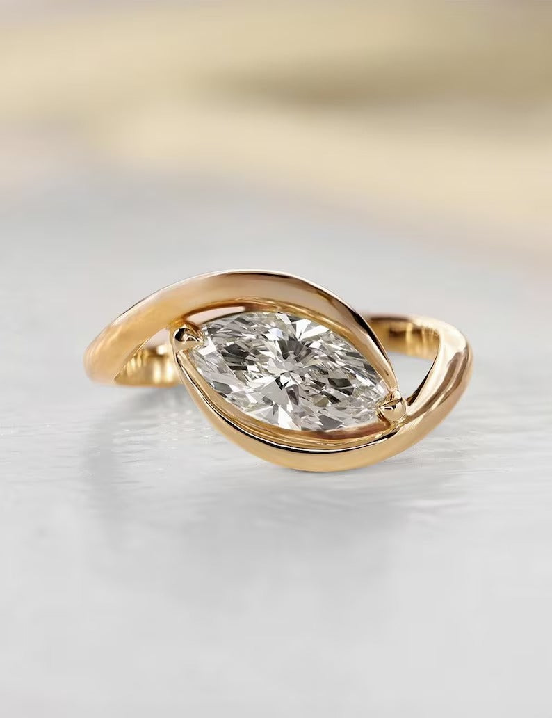 1.0CT-2.0CT East To West Style Marquise Cut Moissanite Curved Engagement Ring