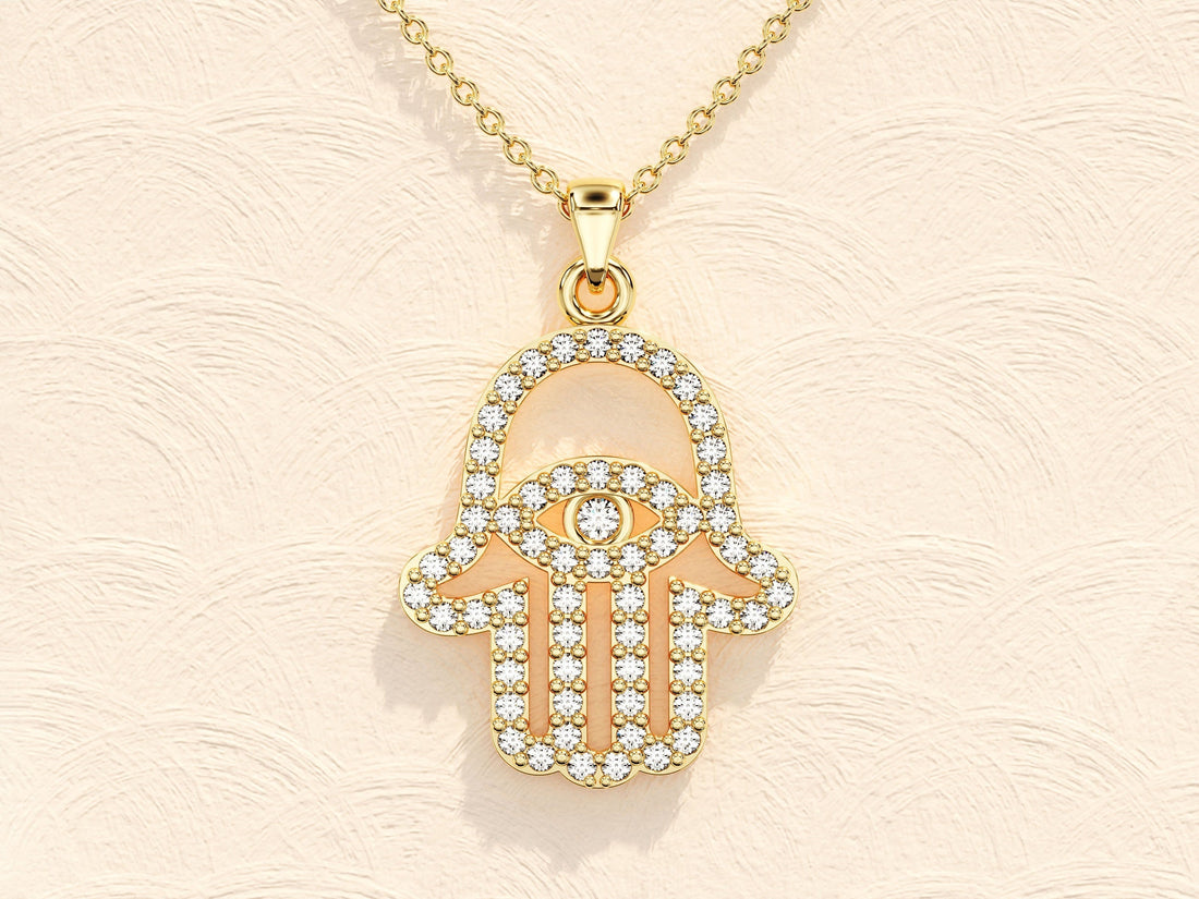 0.31 TCW Round Moissanite Diamond Hamsa Necklace