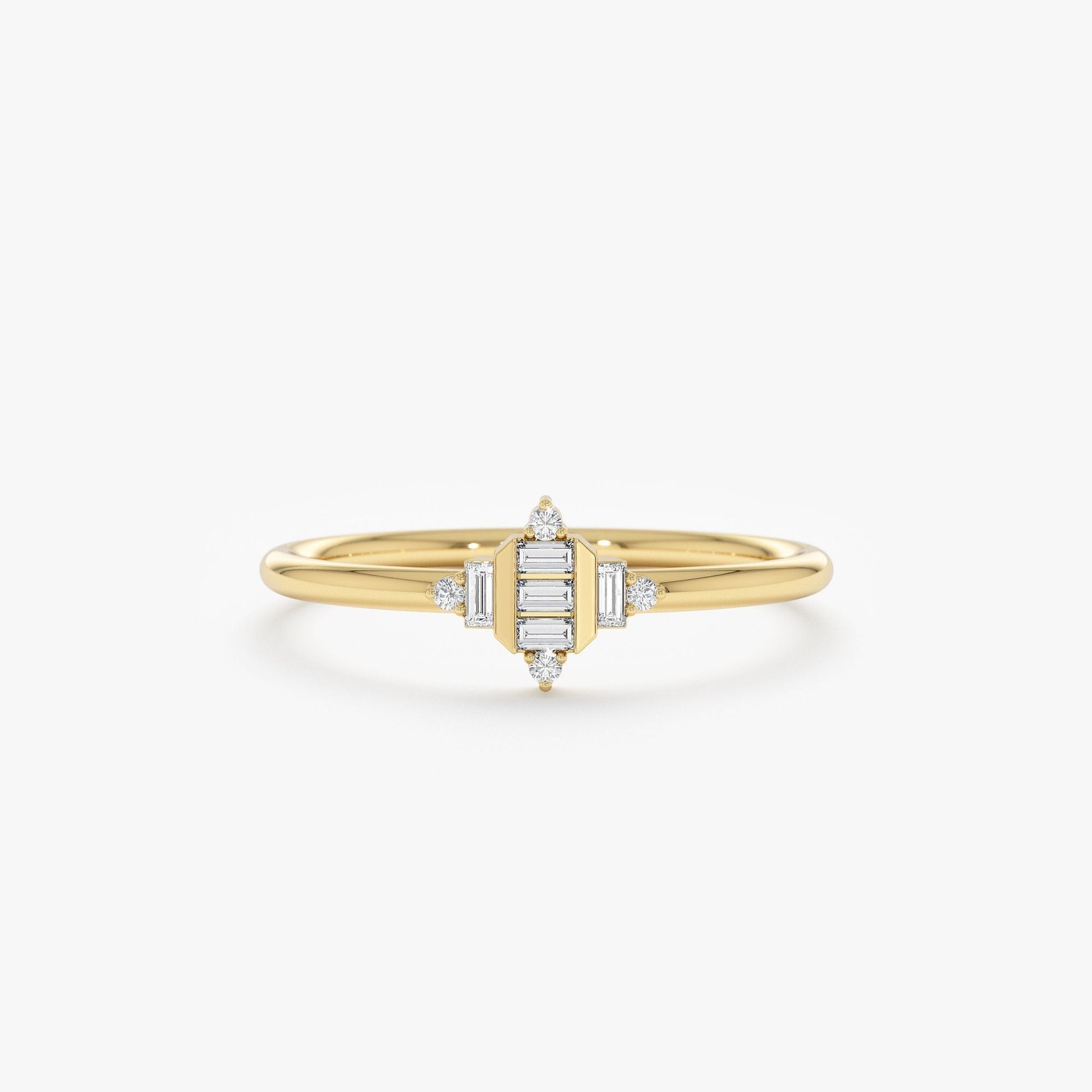 0.08 TCW Baguette Cut Cluster Gold Moissanite Wedding Band