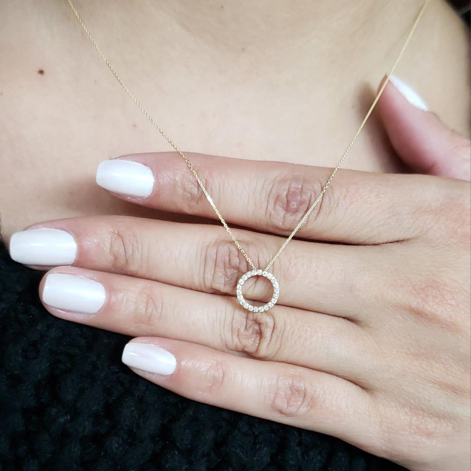0.13 TCW Round Moissanite Open Circle Necklace for Women