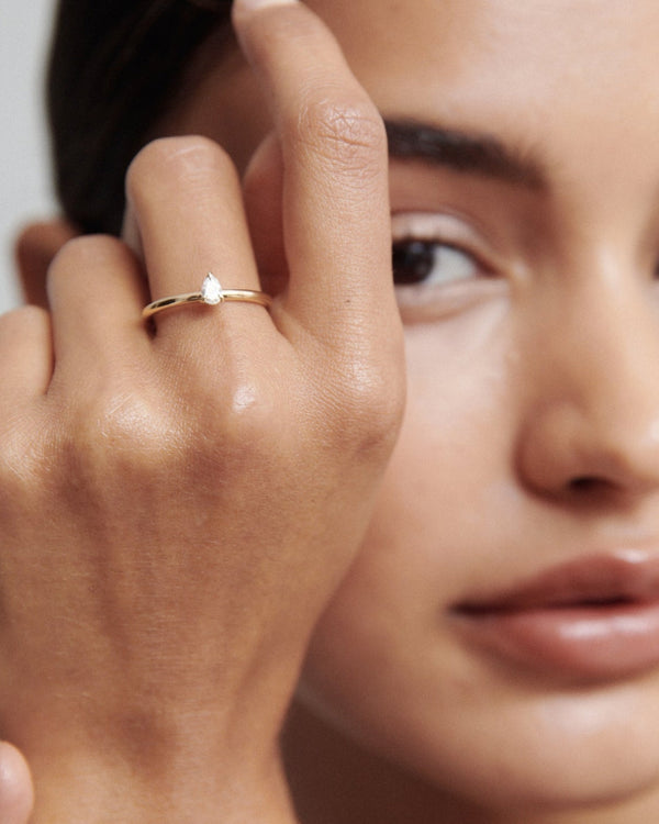 0.15 Carats Pear Shaped CVD Diamond Solitaire Setting Engagement Ring