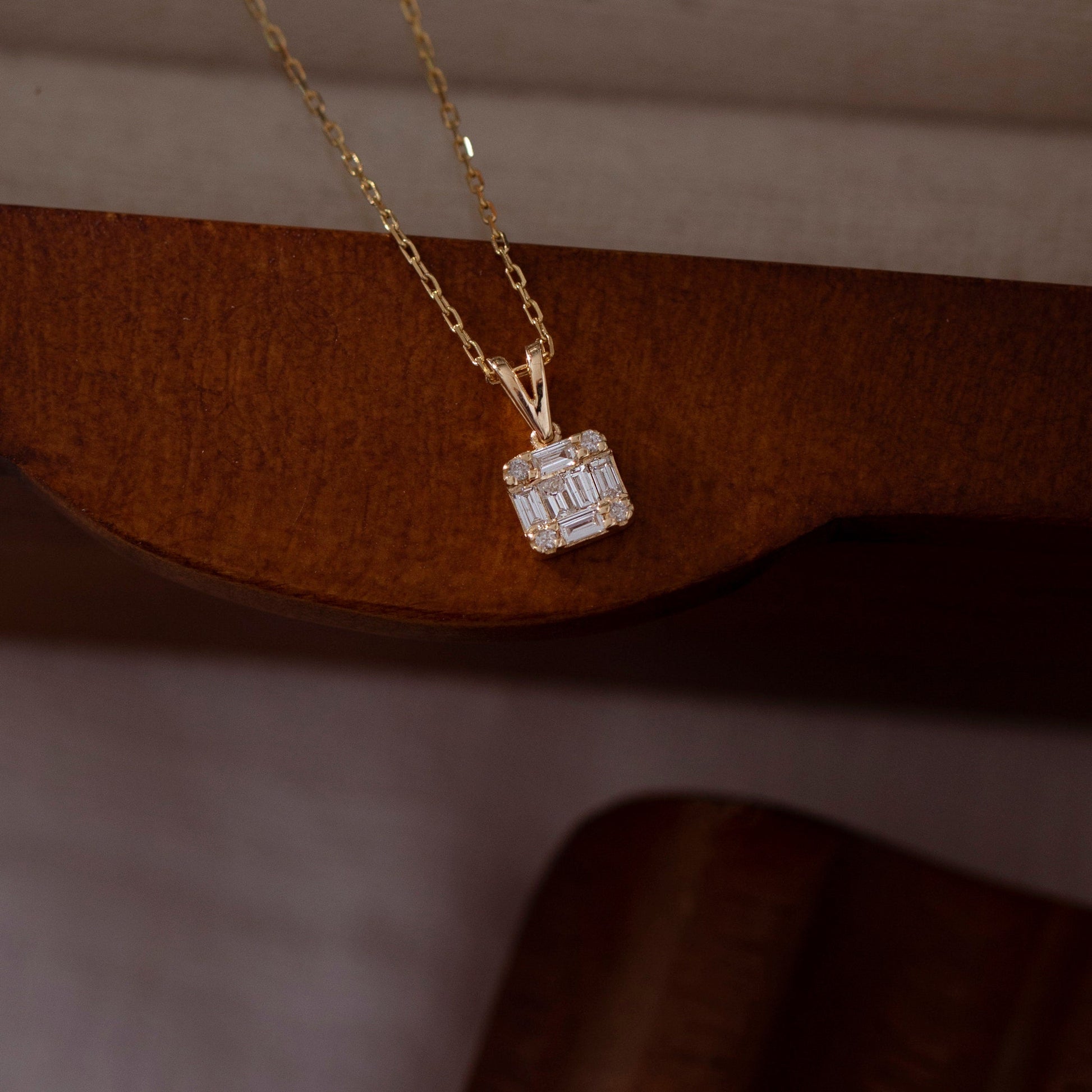 0.18 TCW Round & Baguette Moissanite Square Necklace
