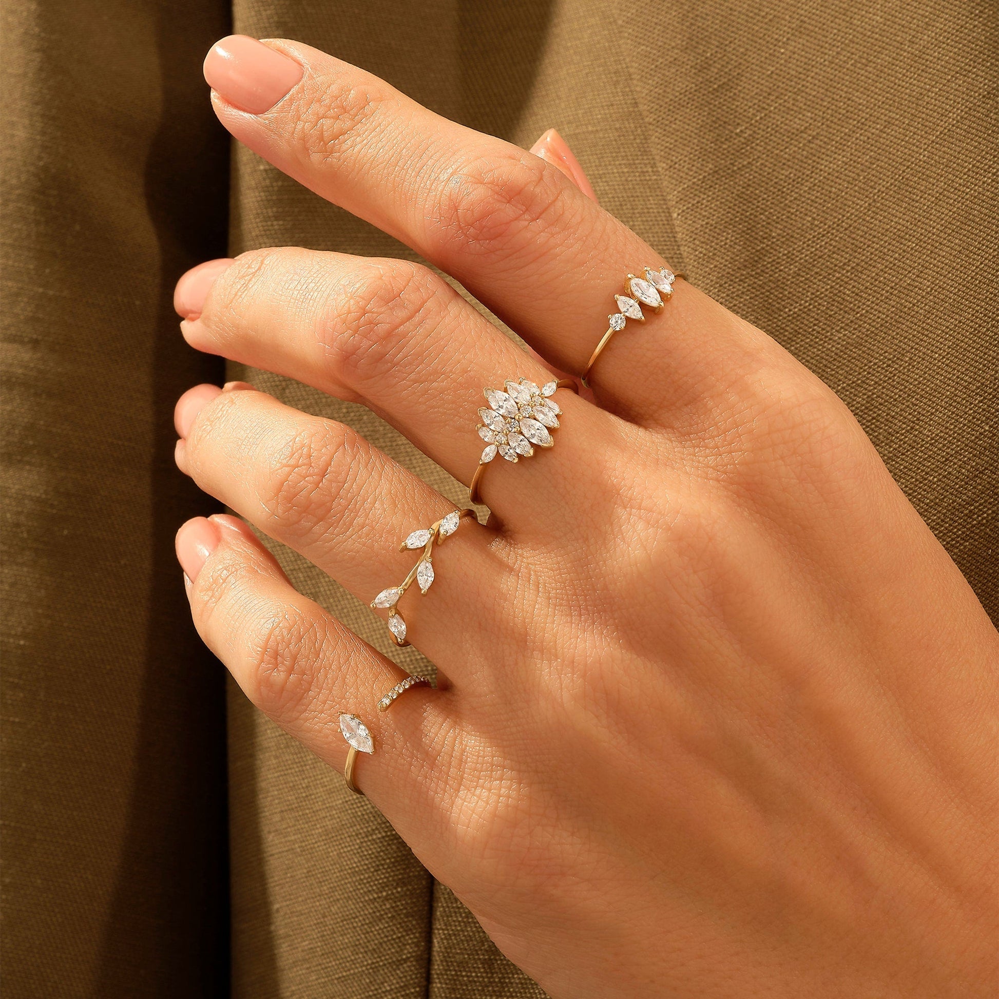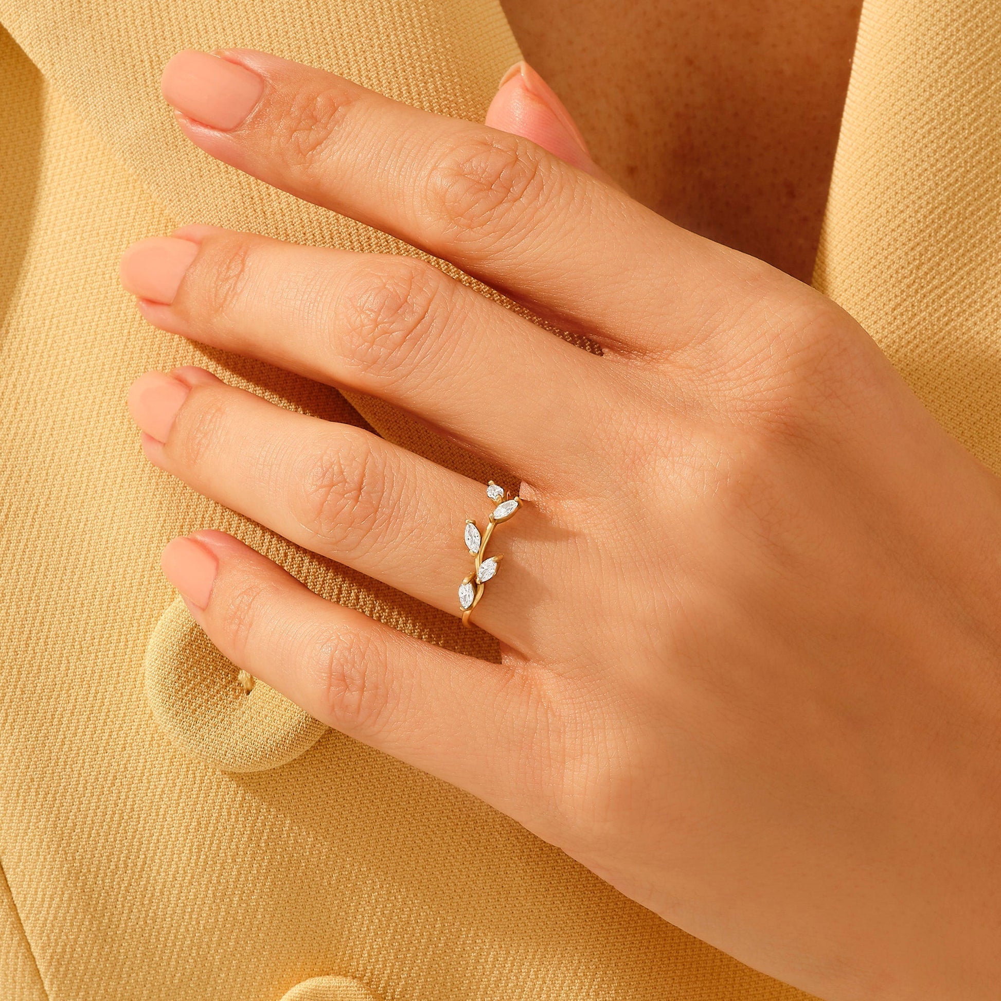 0.20 TCW Marquise Moissanite Leaf Wedding Band