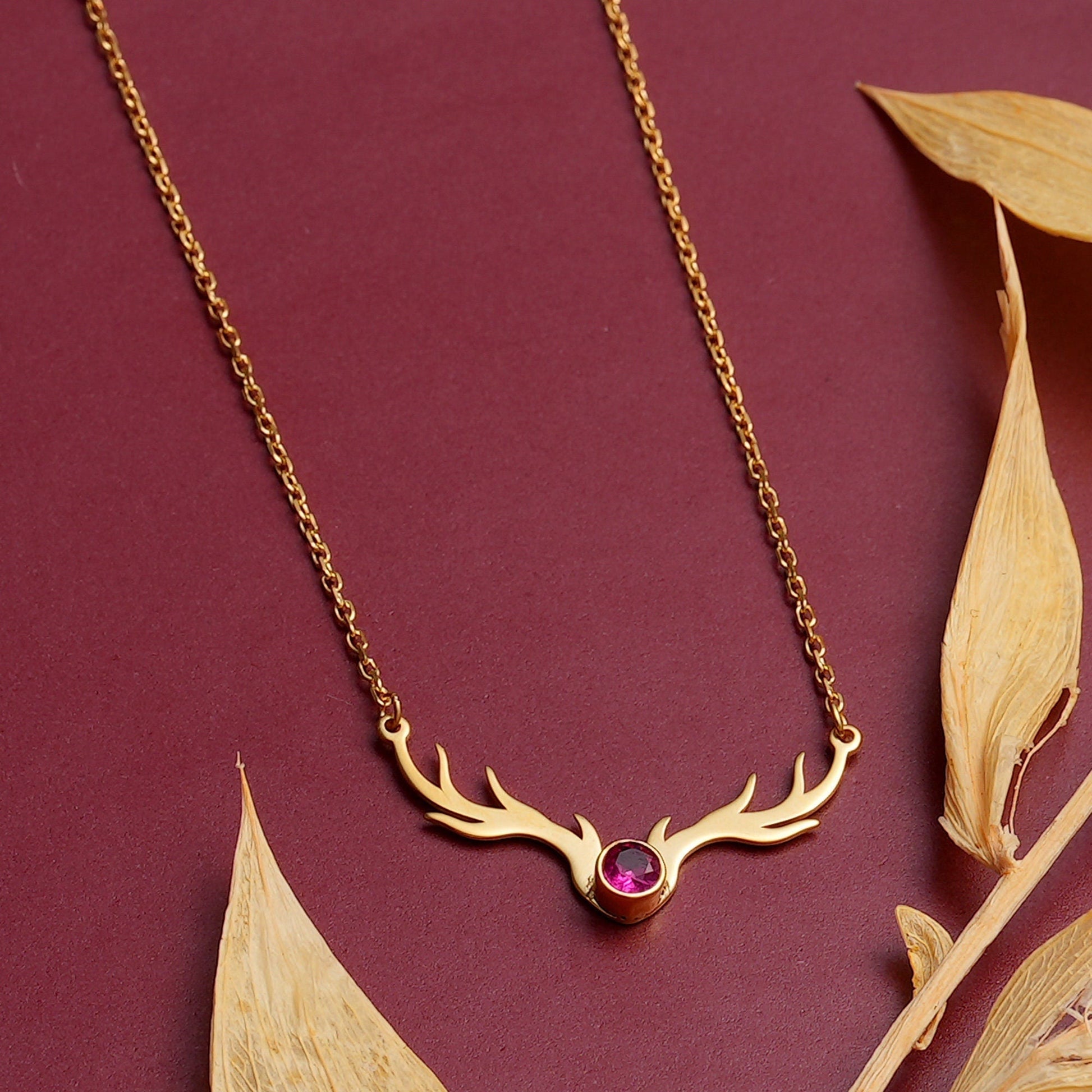 0.20 TCW Round Cut Deer Antler Moissanite Diamond Necklace