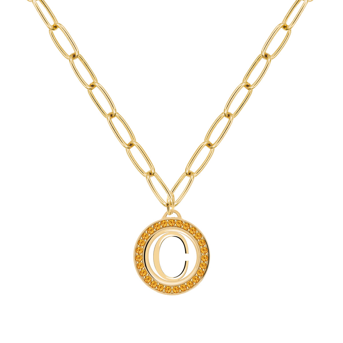 0.20CT Round Citrine Diamond November Birthstone Latter Necklace